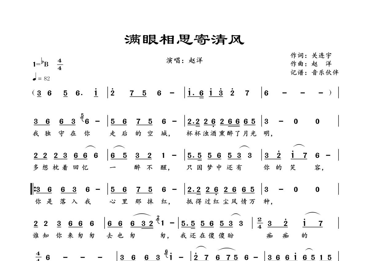 曲谱介绍: 赵洋《满眼相思寄清风》,音乐伙伴编配出品,共有1张高清图谱,免翻页排版设计。