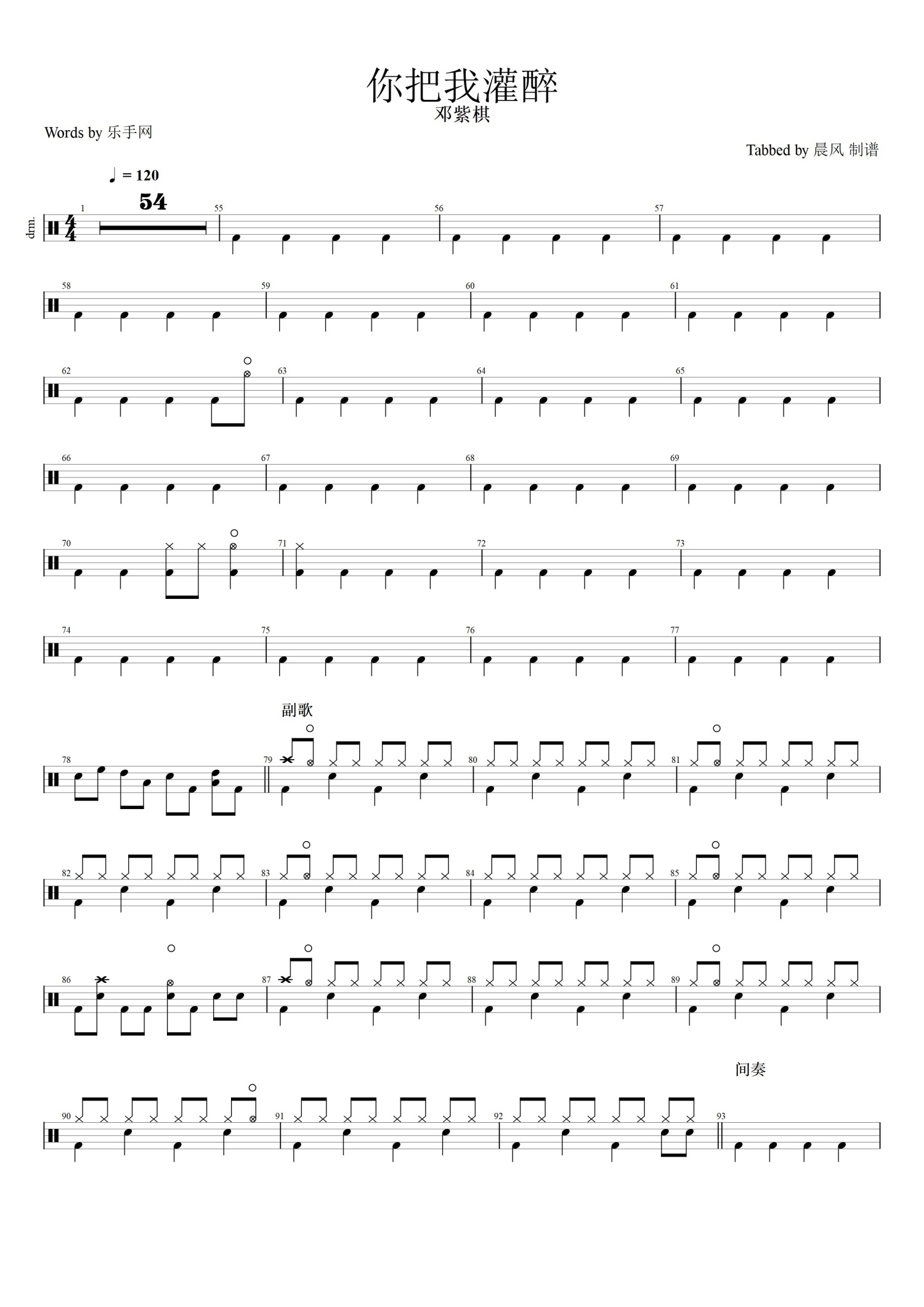你把我灌醉鼓谱 - 邓紫棋 - 架子鼓谱