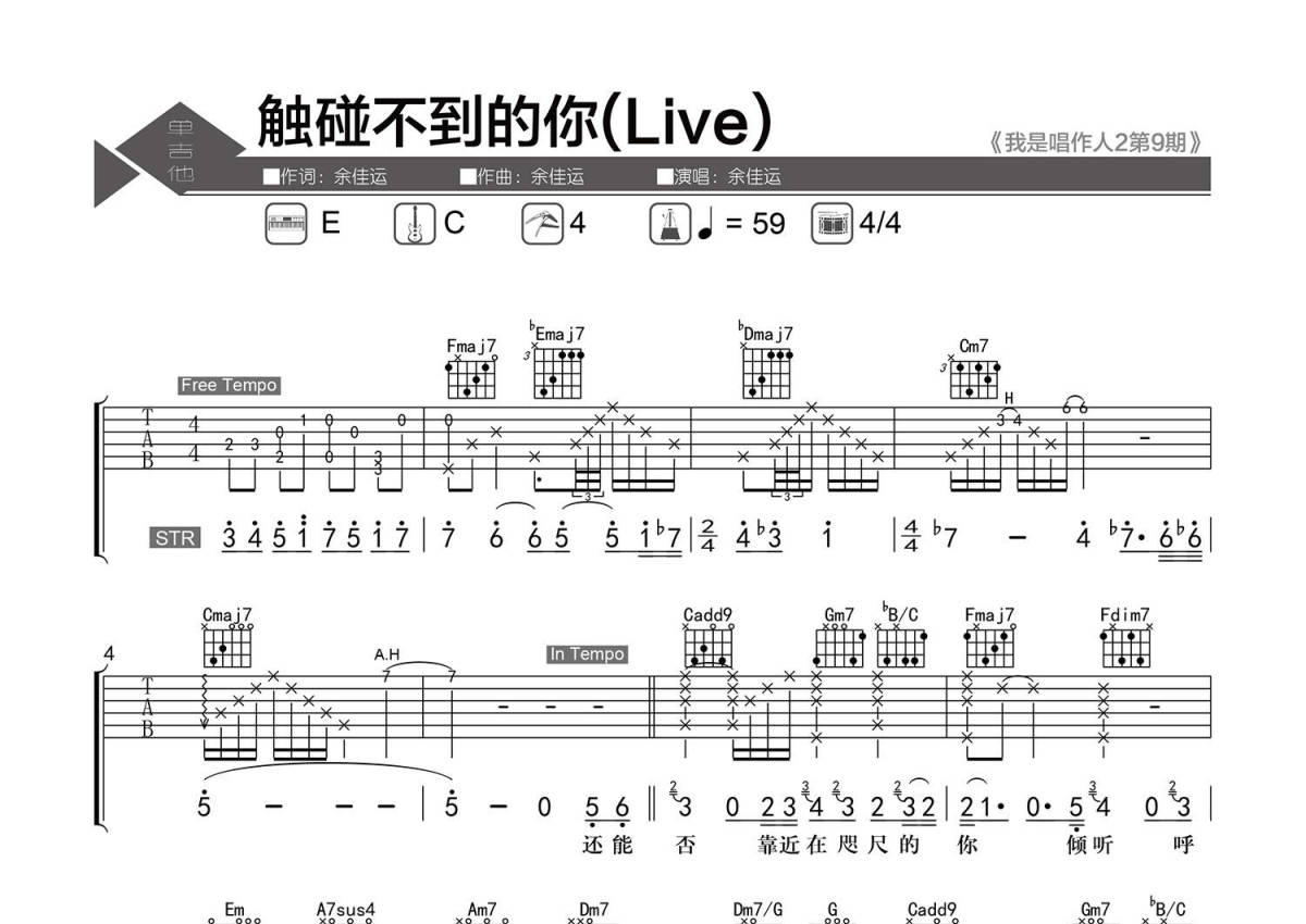 触碰不到的你(Live)吉他谱 - 余佳运 - C调吉他弹唱谱 - 精编弹唱