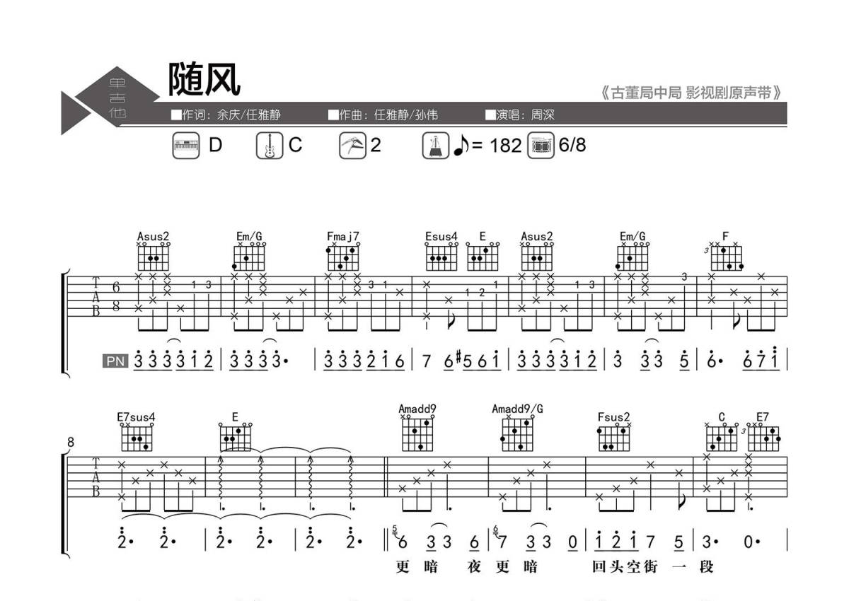 • 随风吉他谱 - 周深 - C调吉他弹唱谱 - 精编弹唱第1张