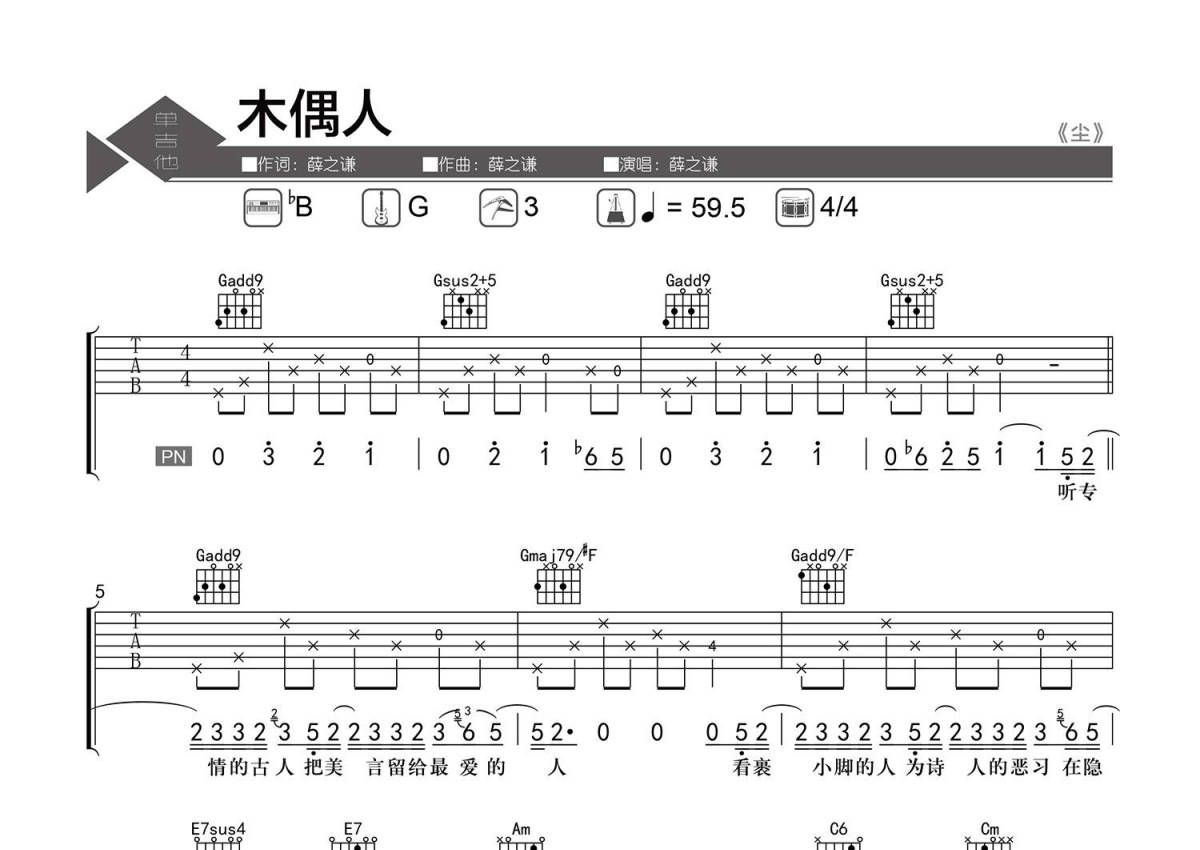 • 木偶人吉他谱 - 薛之谦 - G调吉他弹唱谱 - 精编弹唱第1张