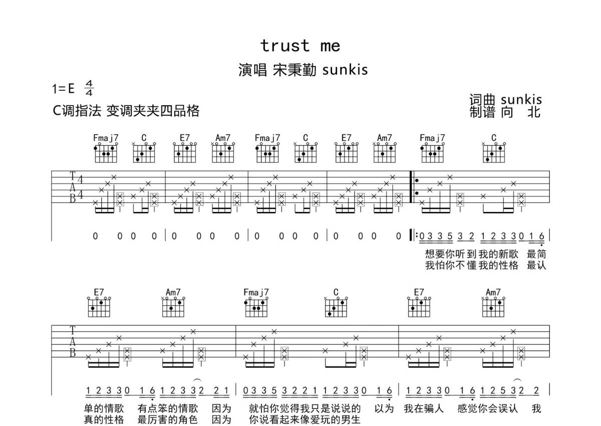 • Trust me吉他谱 - SUNKIS - E调吉他弹唱谱第1张