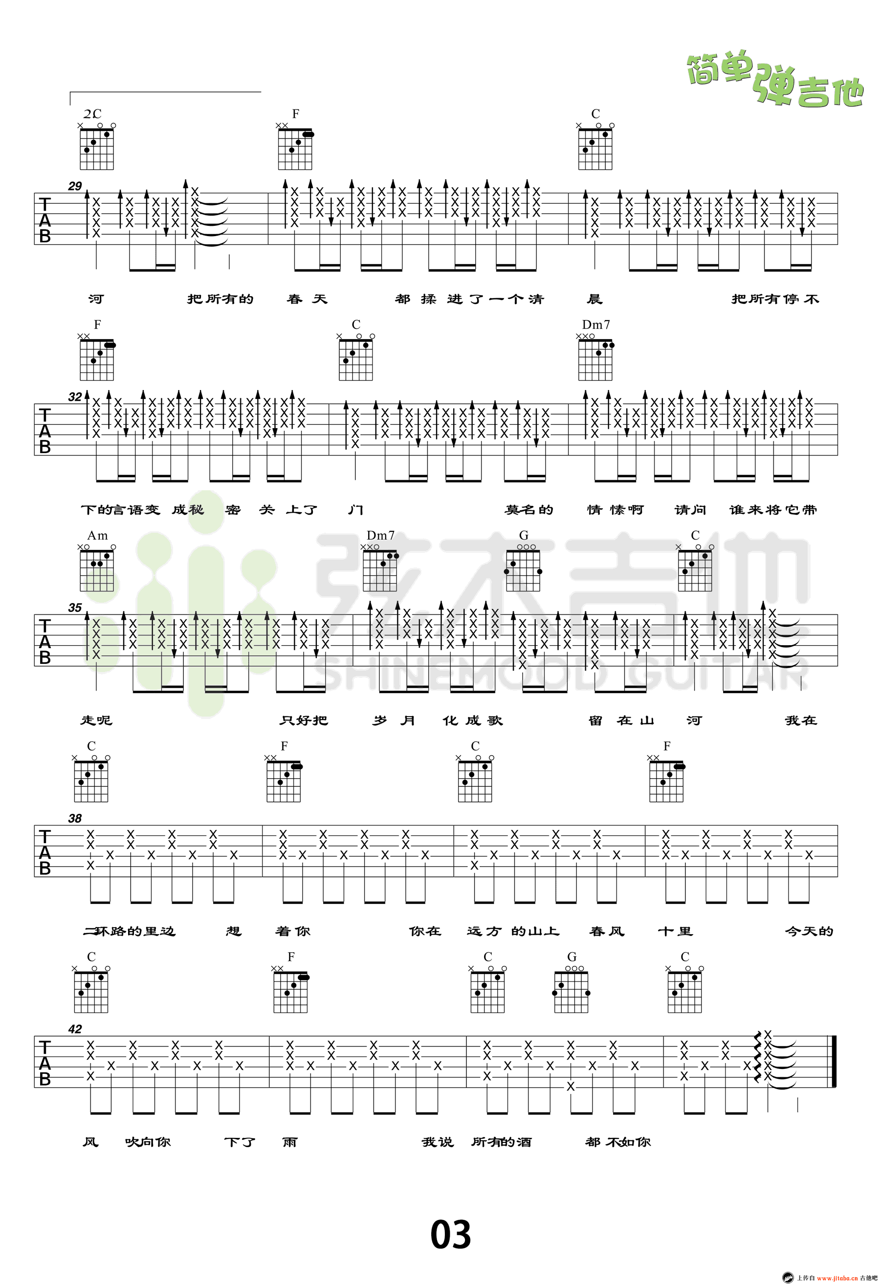 春风十里吉他谱 - 鹿先森乐队 - C调吉他弹唱谱