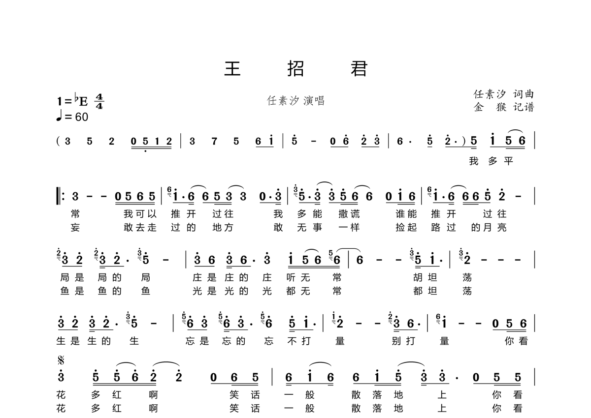王招君简谱 - 任素汐