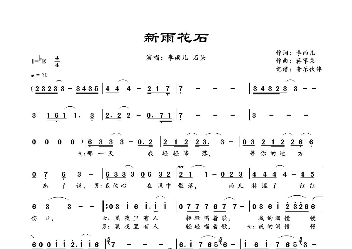 • 新雨花石简谱 - 李雨儿 石头第1张