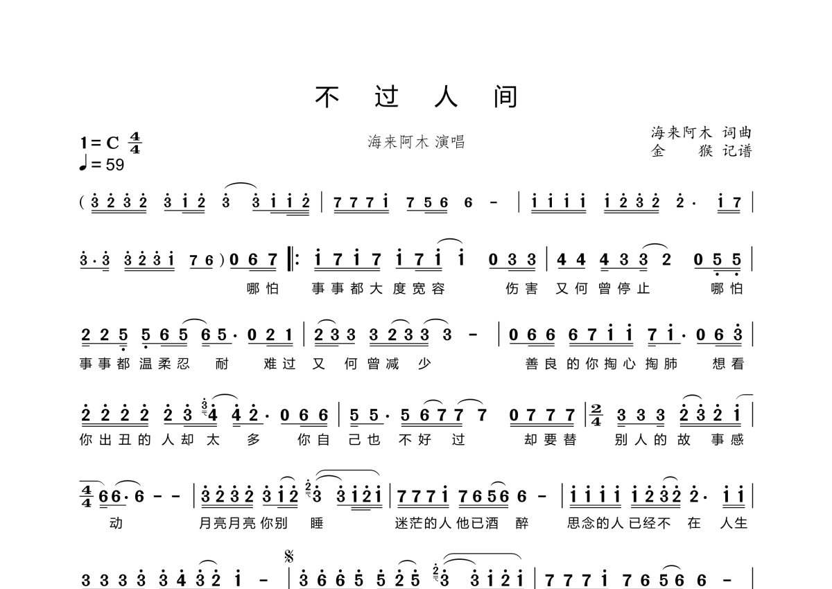 不过人间简谱 - 海来阿木