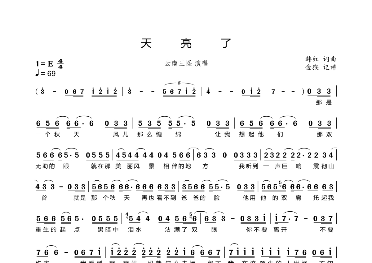 • 天亮了简谱 - 云南三怪 - 云南三怪演唱版本第1张