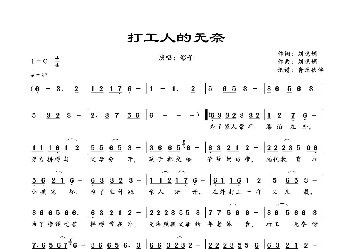 曲谱介绍: 影子《打工人的无奈》,音乐伙伴编配出品,共有1张高清图谱,免翻页排版设计。