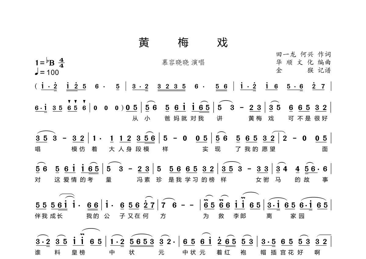 曲谱介绍: 慕容晓晓《黄梅戏》,金猴奋起千钧棒编配出品,共有2张高清图谱,免翻页排版设计。