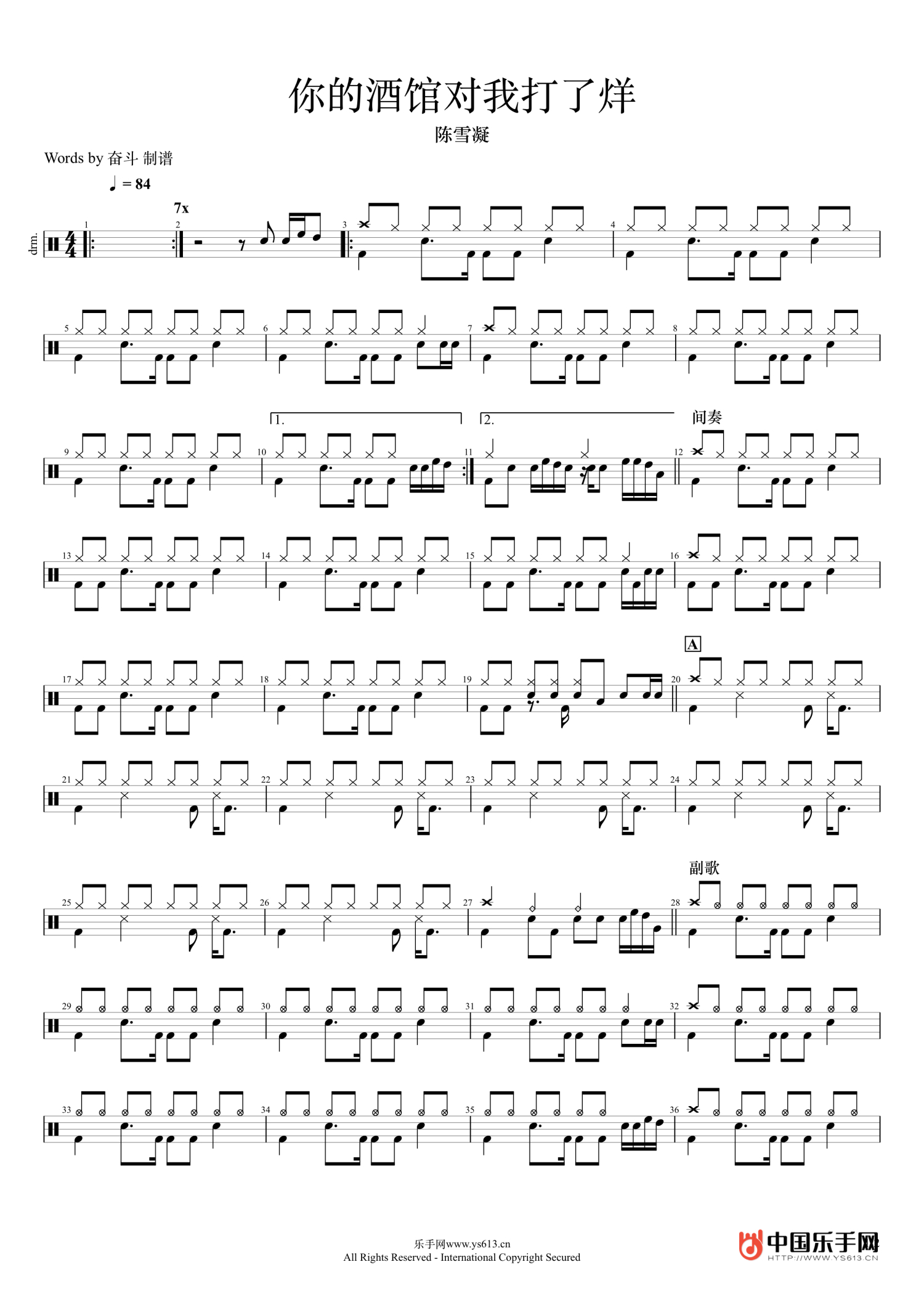 你的酒馆对我打了烊鼓谱 - 陈雪凝 - 架子鼓谱