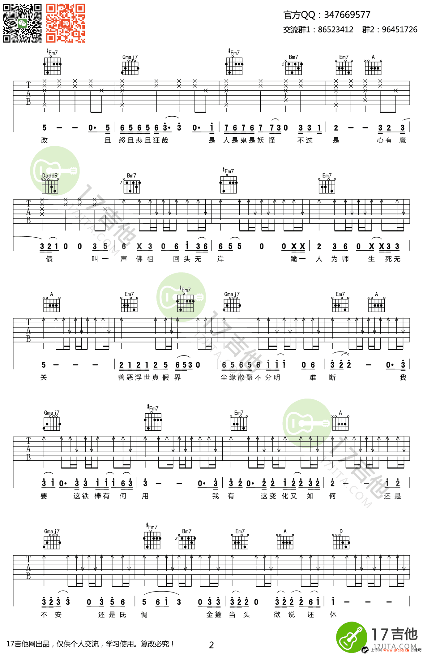 曲谱介绍: 悟空吉他谱,戴荃《中国好歌曲》版本,曲谱为D调指法,高清弹唱谱,三张图片谱。悟空六线谱,齐元义编配,91吉他谱网站收藏推荐。 一首让人荡气回肠的歌曲,尤其中间部分的高潮,京腔的演唱更是为这首歌增添了一丝古风韵味,“叫一声佛祖,回头无岸,跪一人为师,生死无关。贯穿始终引共鸣。
