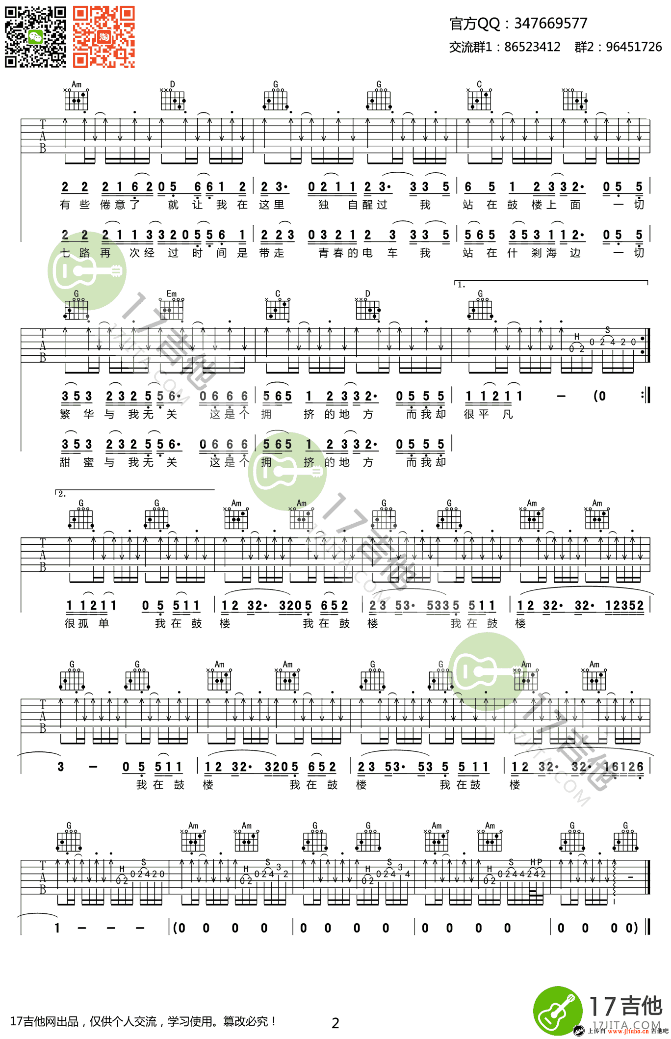 当前位置:琴谱网>吉他弹唱>鼓楼