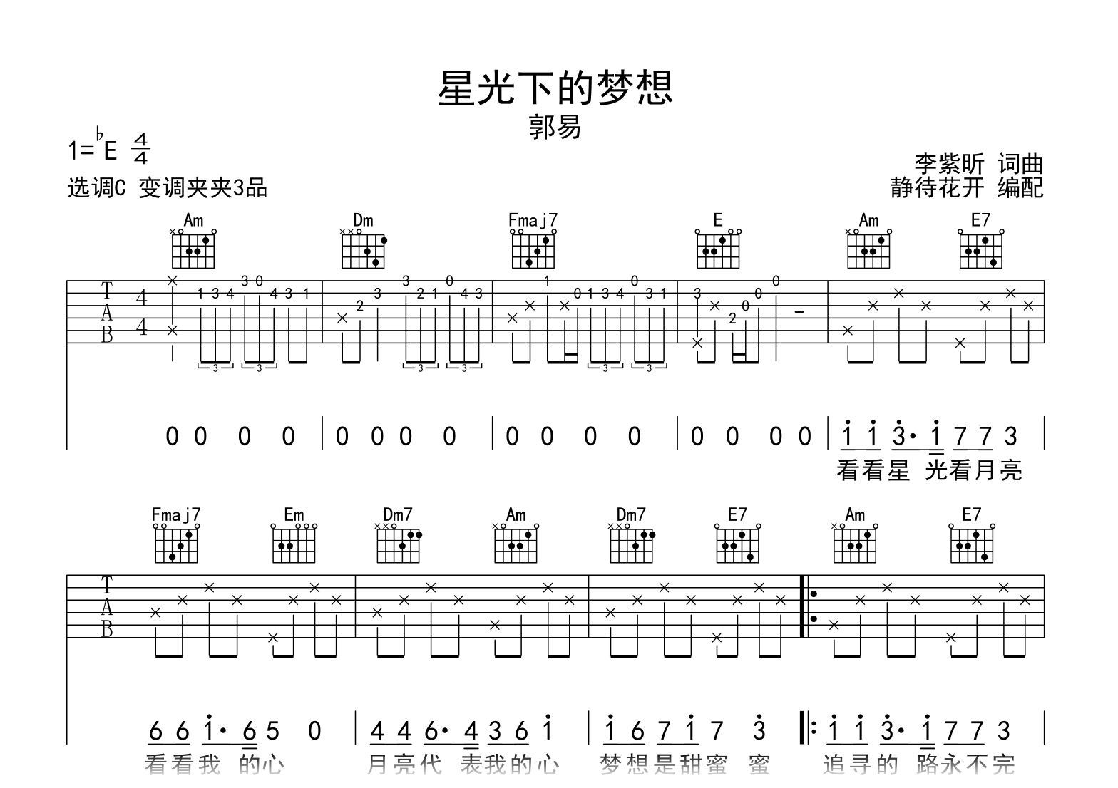 星光下的梦想吉他谱 - 郭易 - C调吉他弹唱谱