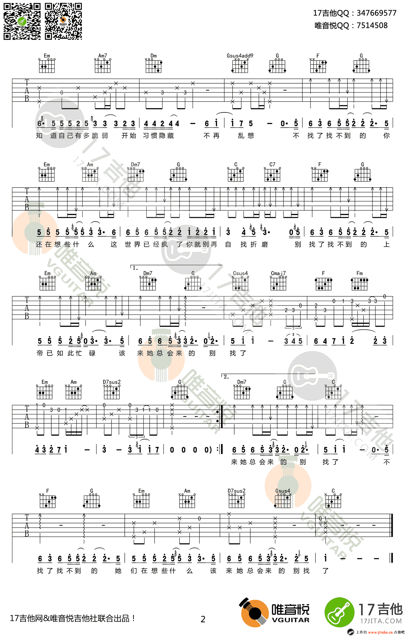 当前位置:琴谱网>吉他弹唱>不找了