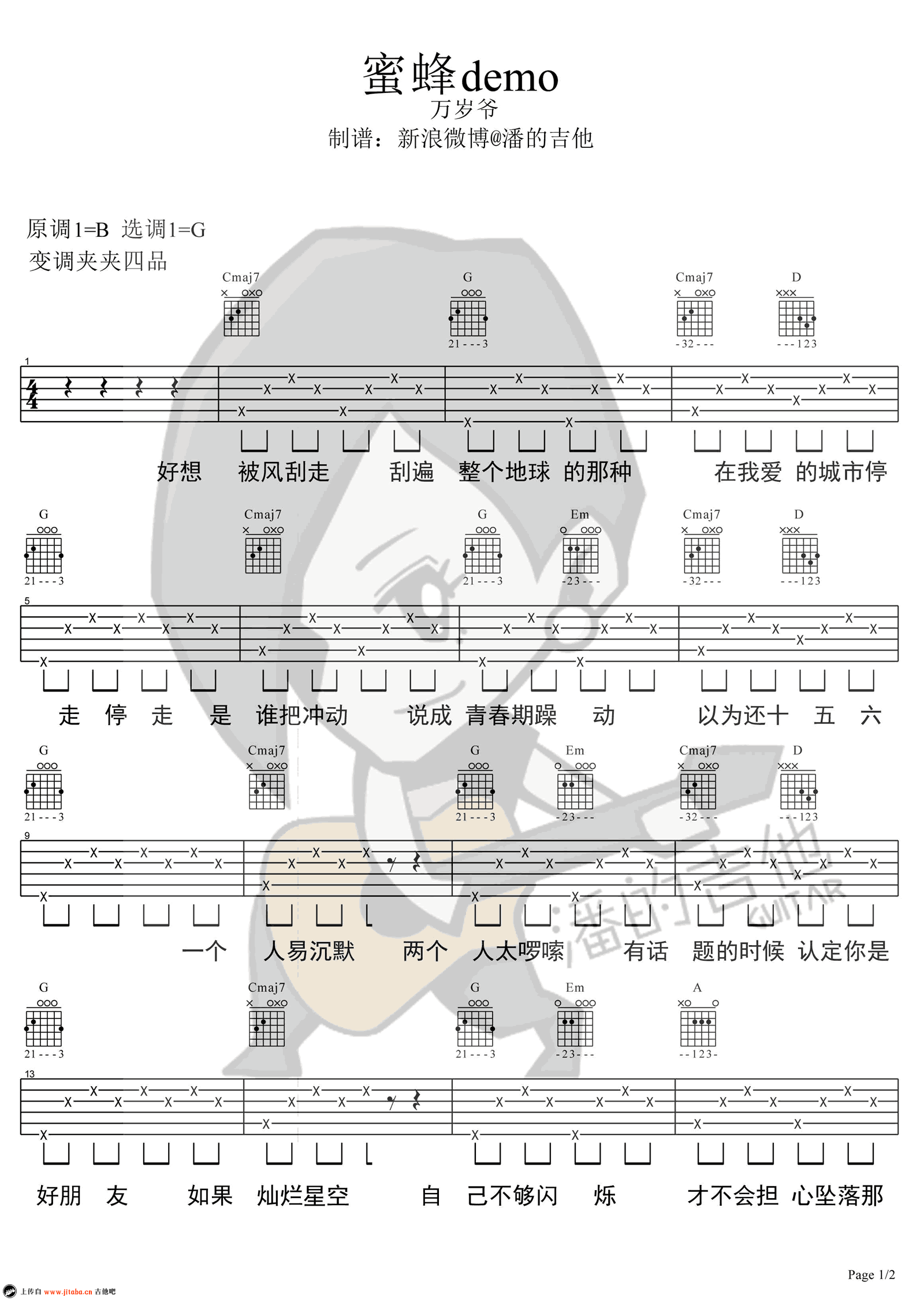 当前位置:琴谱网>吉他弹唱>蜜蜂demo