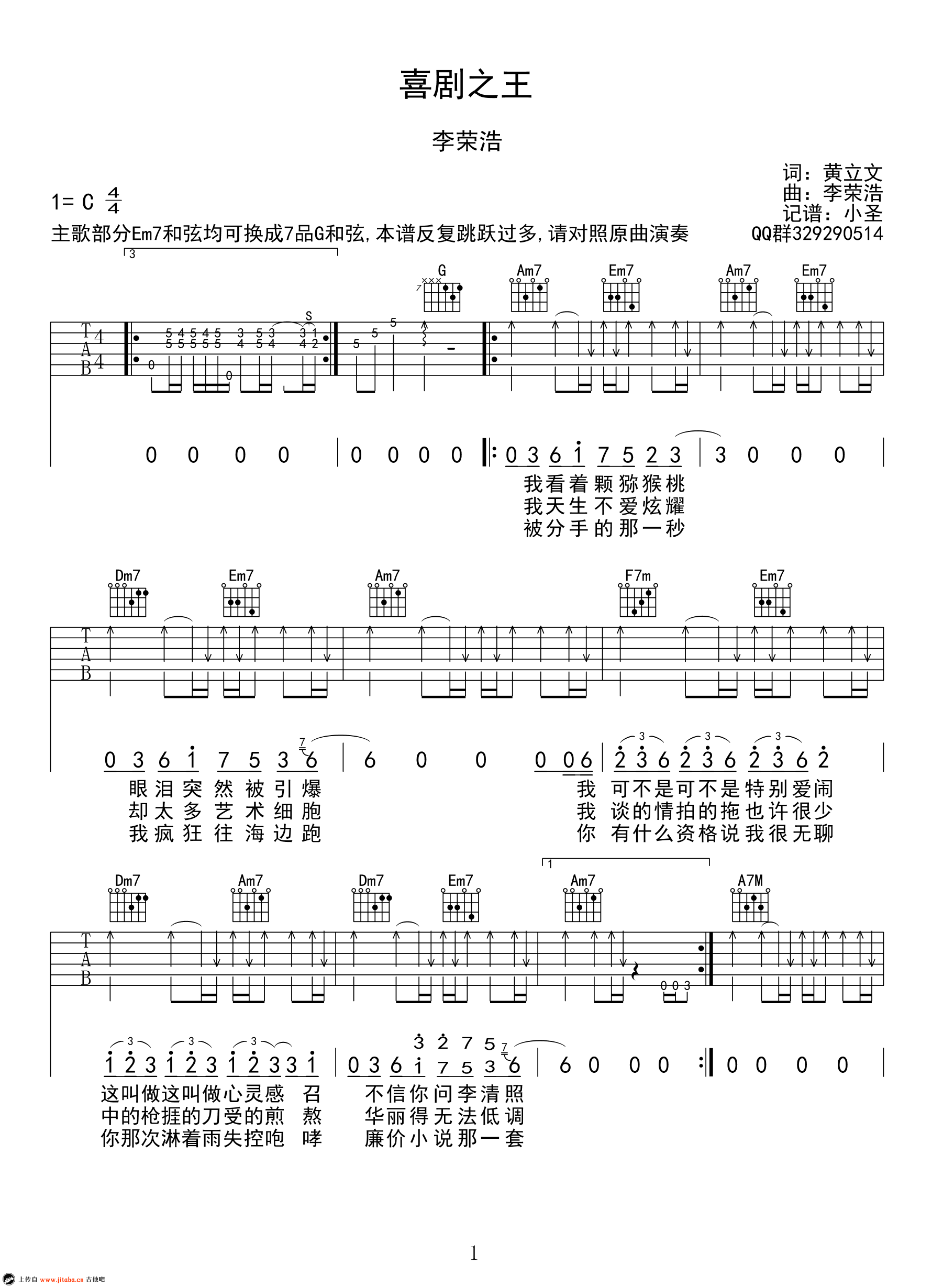 当前位置:琴谱网>吉他弹唱>喜剧之王