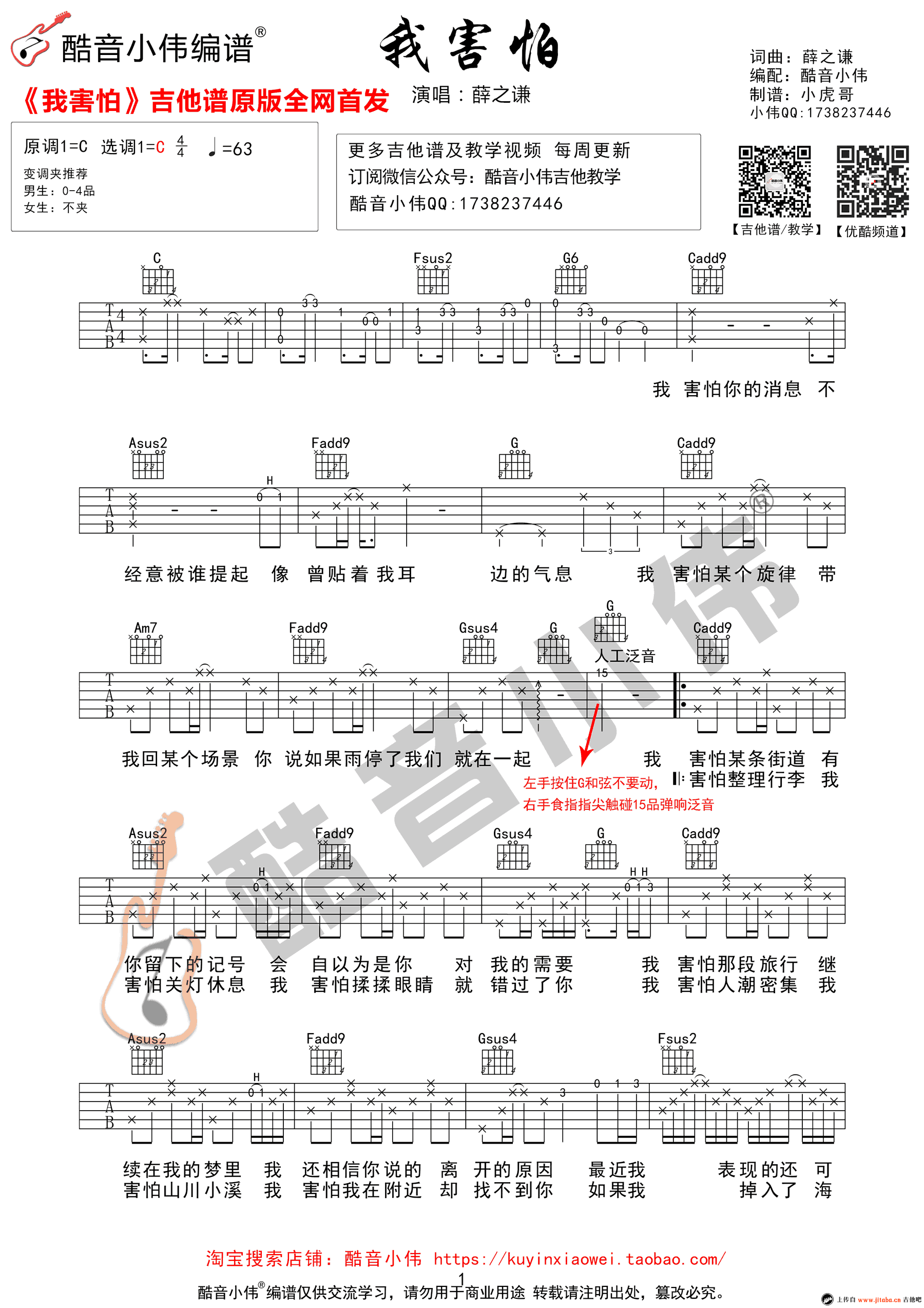 我害怕吉他谱 - 薛之谦 - C调吉他弹唱谱 - 原版
