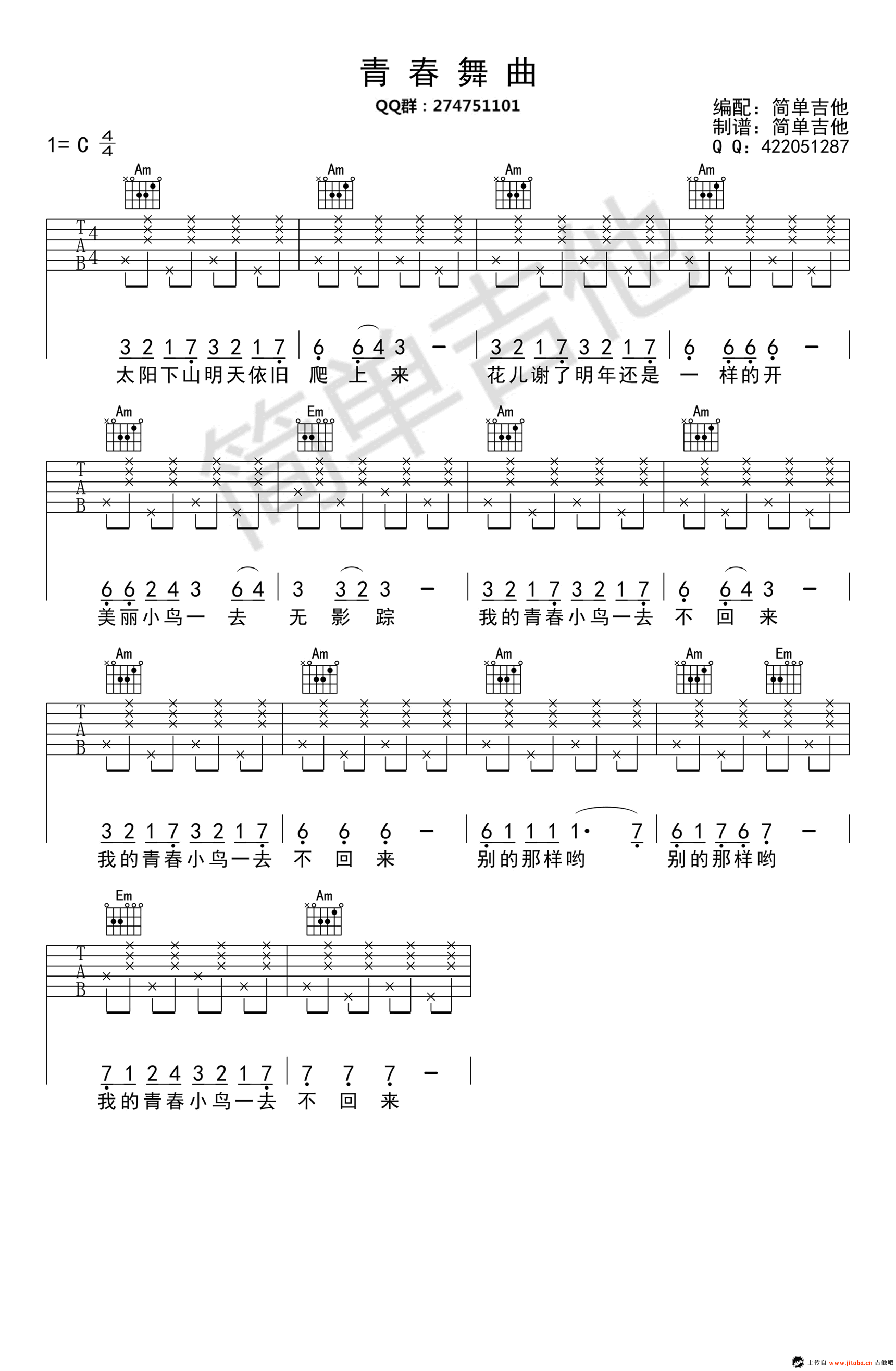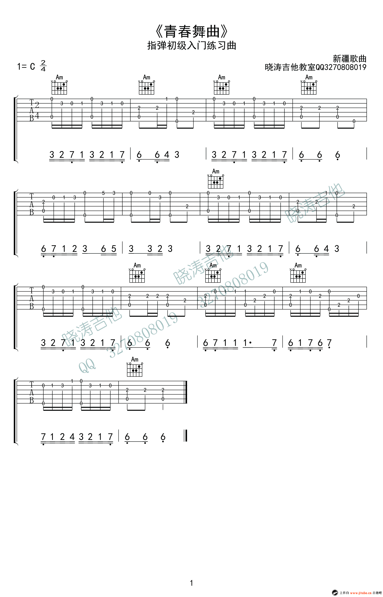 青春舞曲吉他谱 - 简单初级入门练习 - 吉他独奏谱
