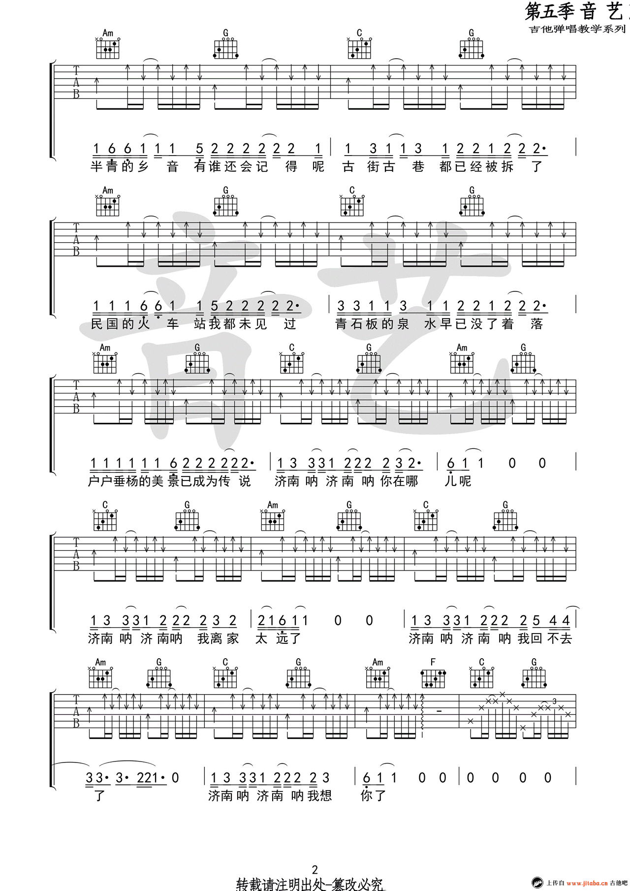 当前位置:琴谱网>吉他弹唱>济南济南