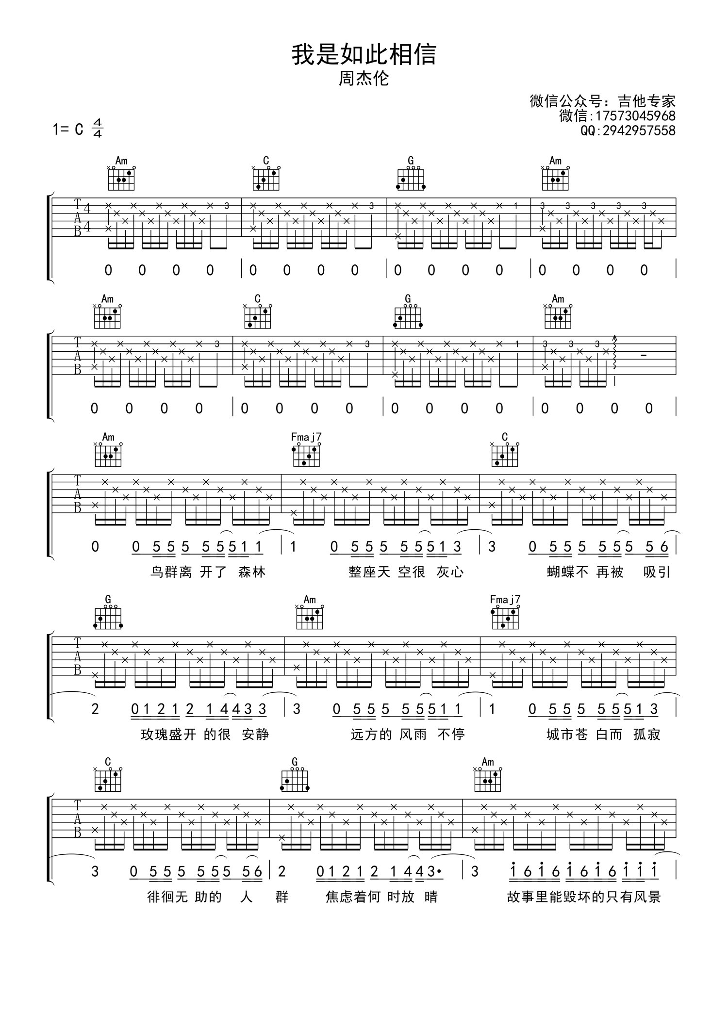 • 我是如此相信吉他谱 - 周杰伦 - C调吉他弹唱谱第1张