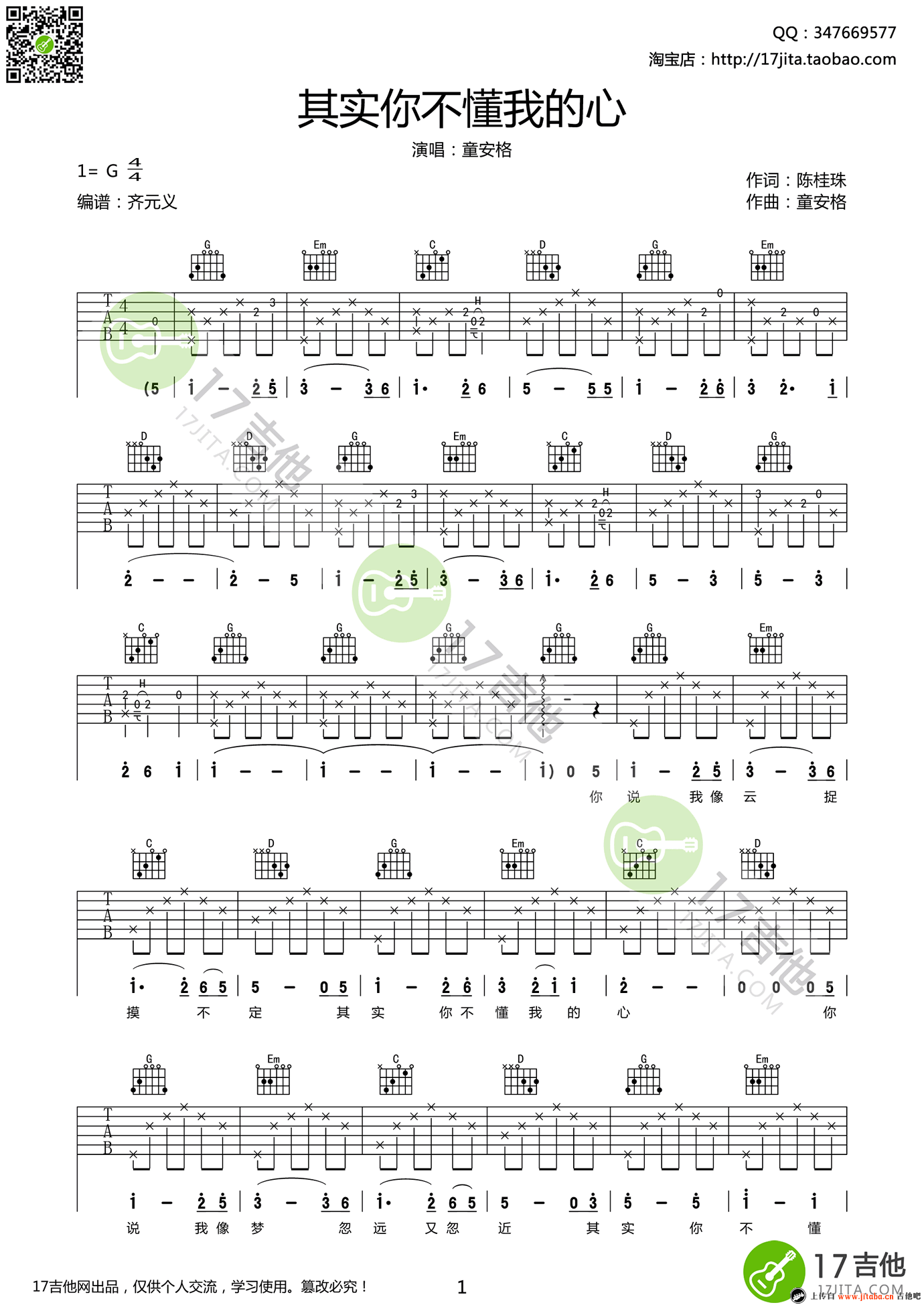 当前位置:琴谱网>吉他弹唱>其实你不懂我的心