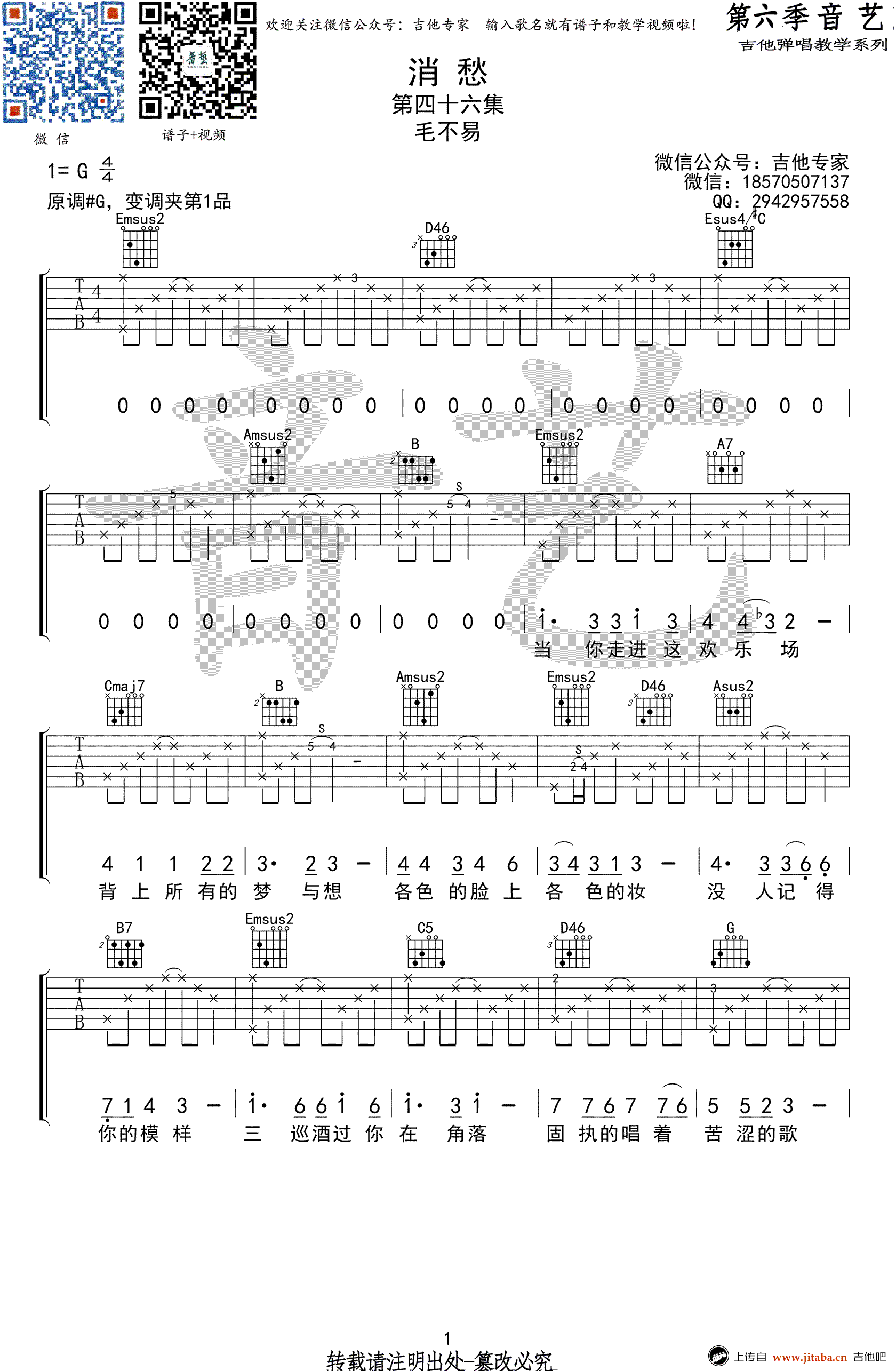 当前位置:琴谱网>吉他弹唱>消愁
