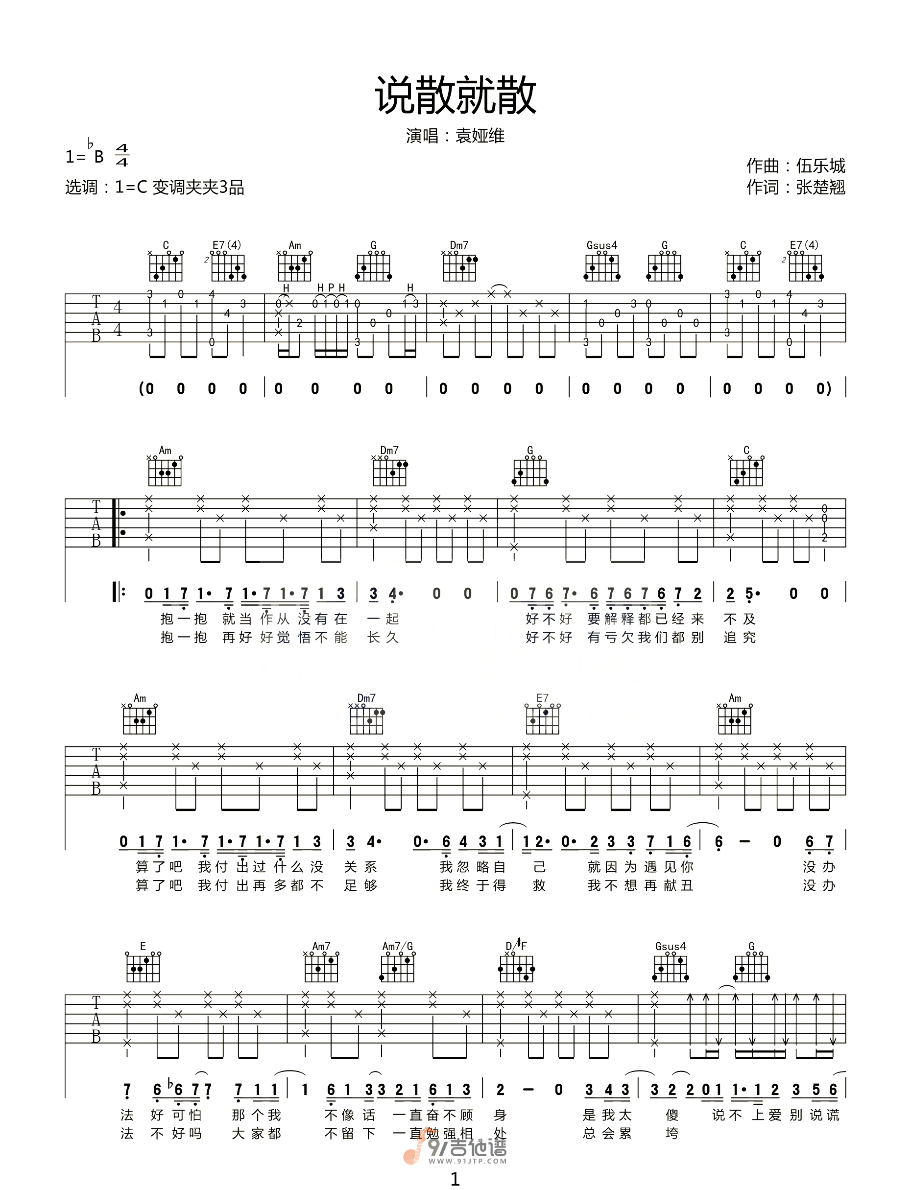 说散就散吉他谱 - 袁娅维 - C调吉他弹唱谱 - 原版