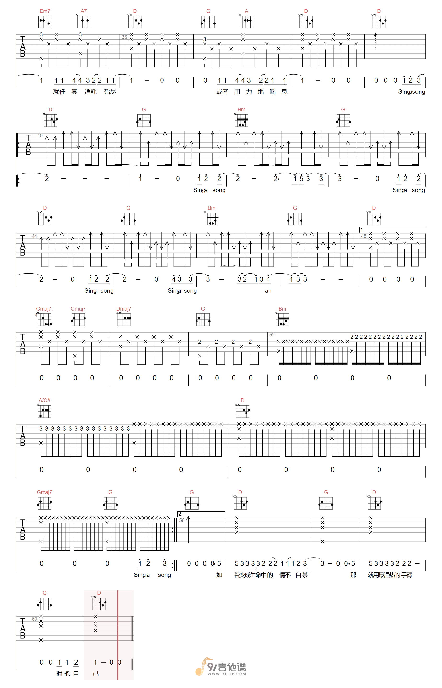 当前位置:琴谱网>吉他弹唱>自己