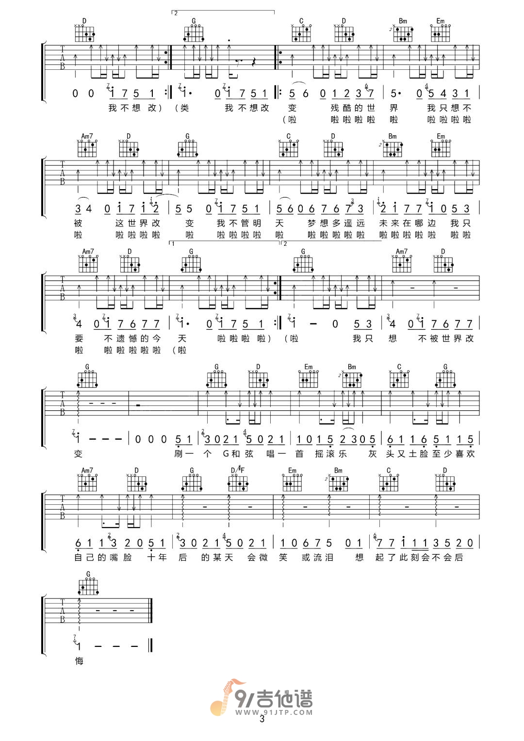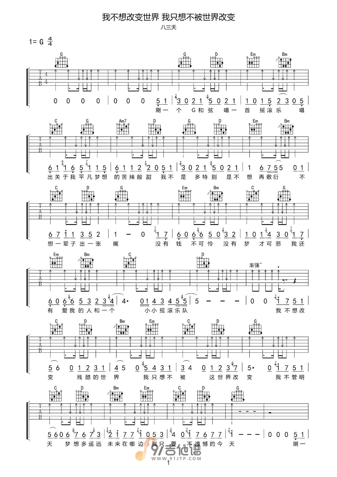 我不想改变世界我只想不被世界改变吉他谱 - 八三夭 - G调吉他弹唱谱 - 原版