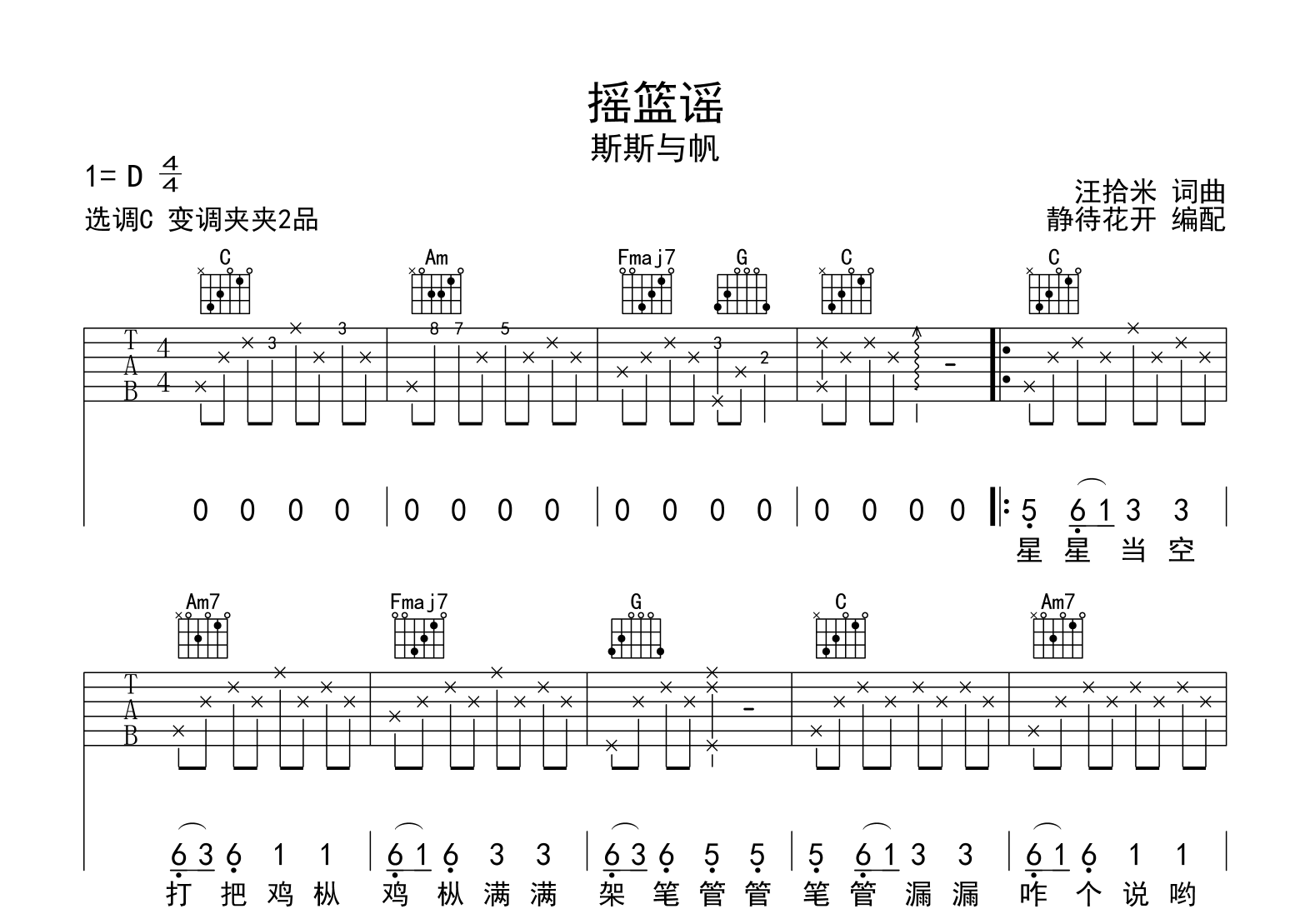 摇篮谣吉他谱 - 斯斯与帆 - C调吉他弹唱谱
