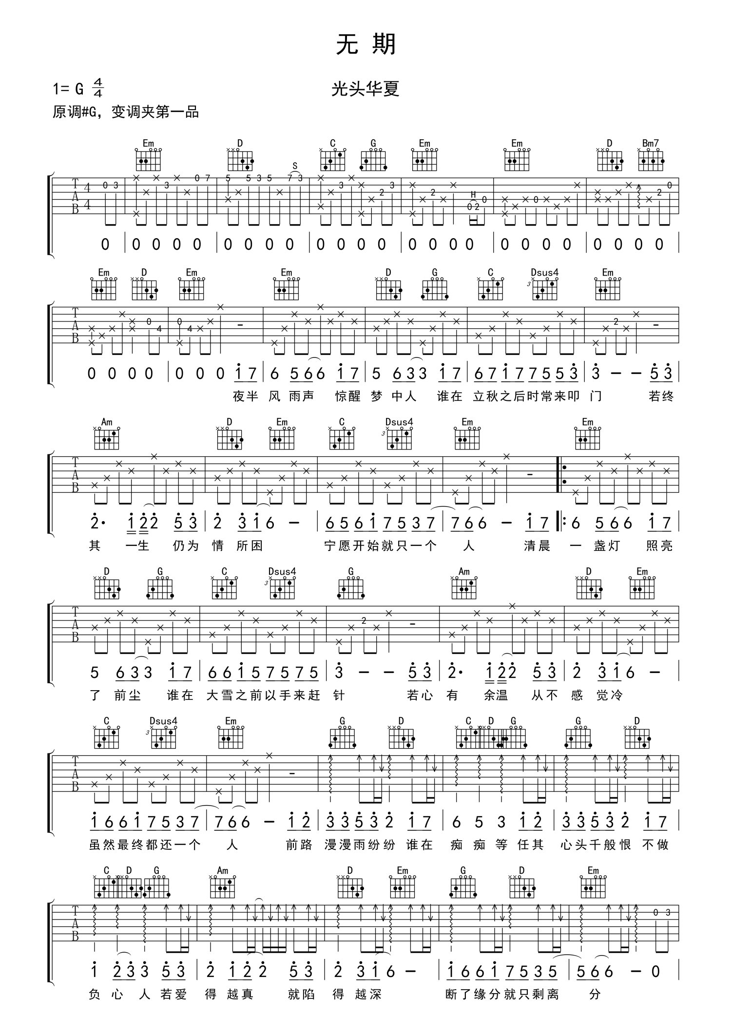 • 无期吉他谱 - 光头华夏 - G调吉他弹唱谱第1张