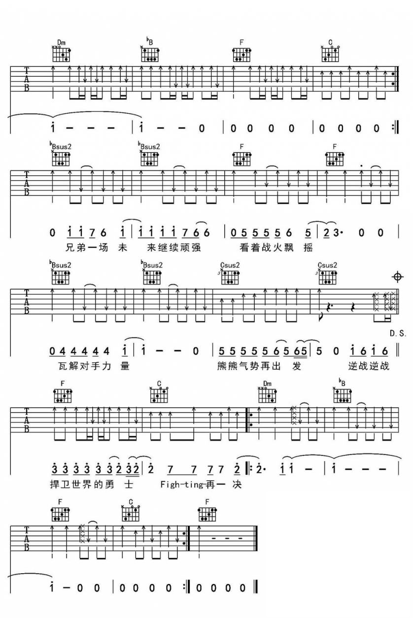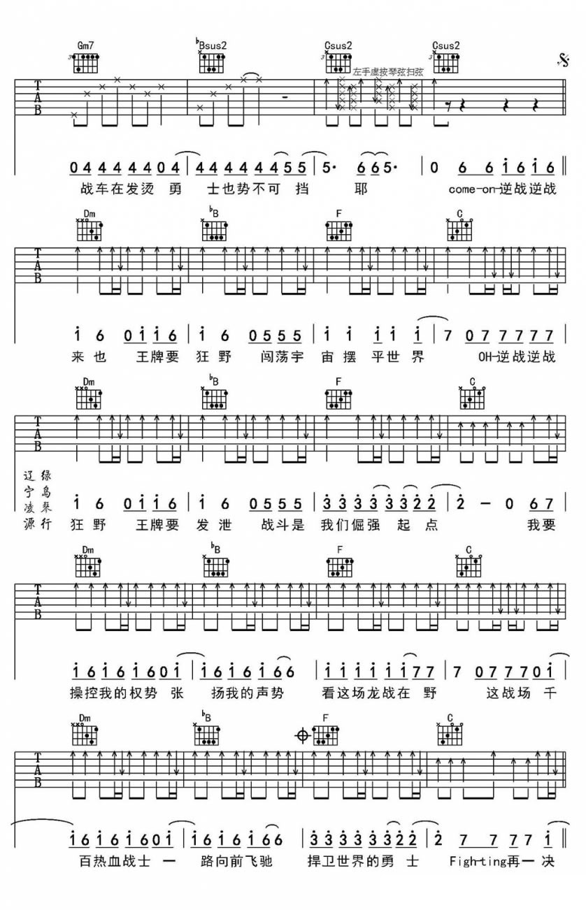 当前位置:琴谱网>吉他弹唱>逆战 张杰 F调指法高清版