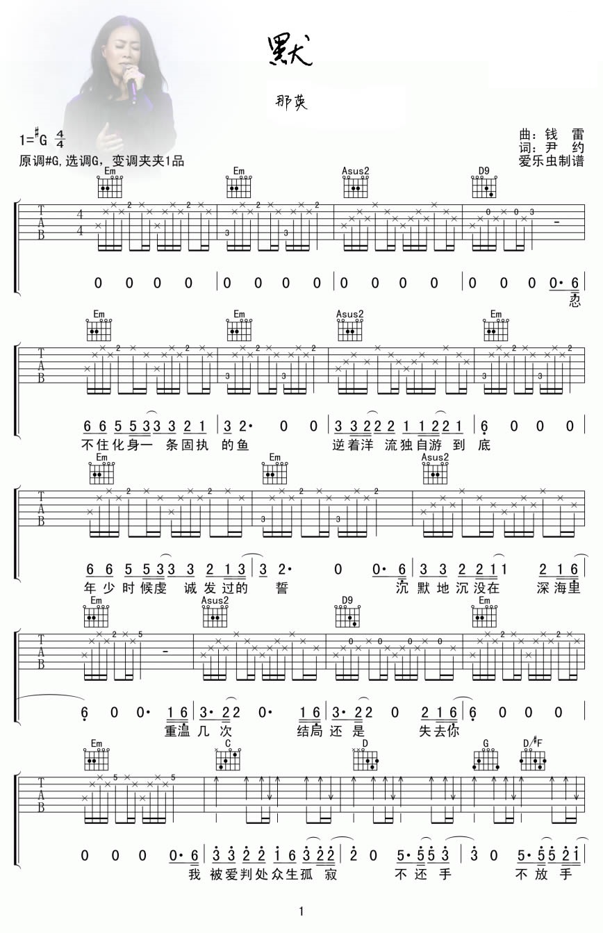 默G调 那英 默吉他谱 - 那英 - G调吉他弹唱谱