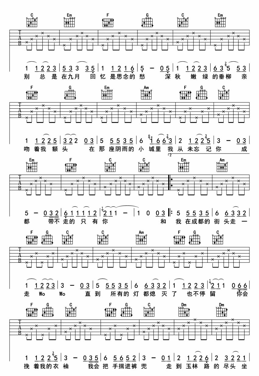 写给成都的歌 赵雷 C调简单版 C调指法高清图片吉他谱 - 写给成都的歌 - C调吉他弹唱谱