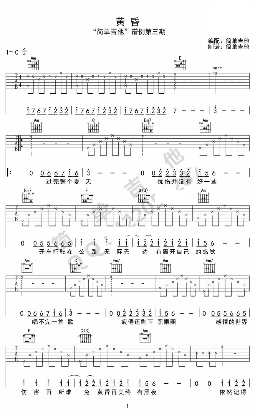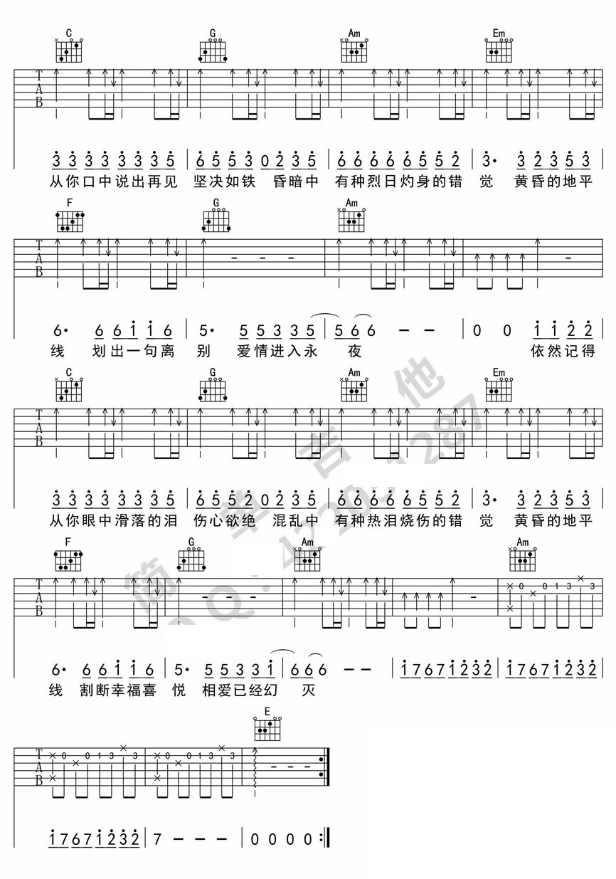 当前位置:琴谱网>吉他弹唱>黄昏简单