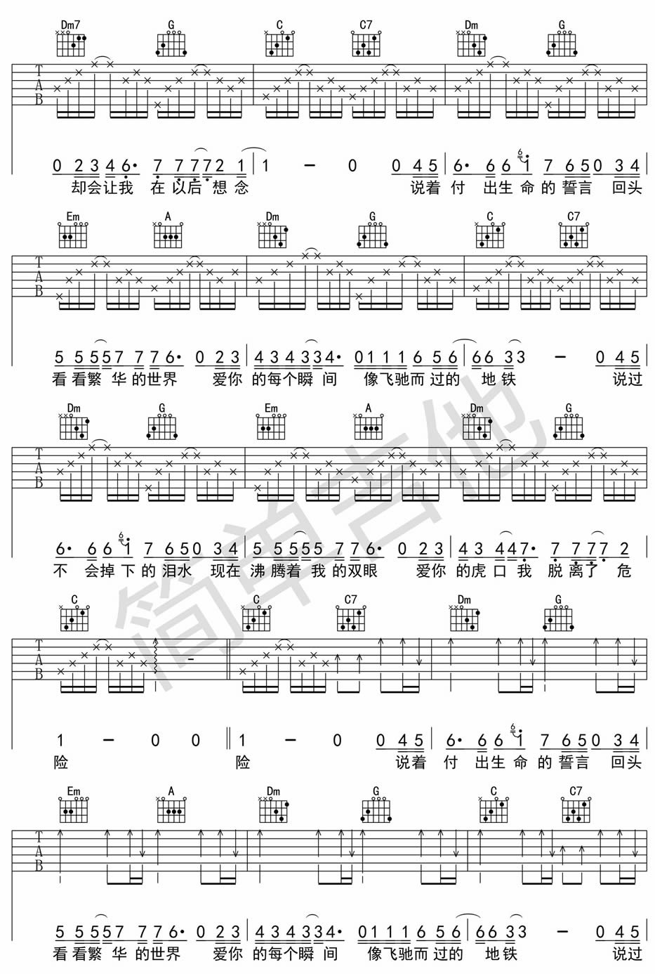 当前位置:琴谱网>吉他弹唱>虎口脱险简单版 张磊 C调指法六线