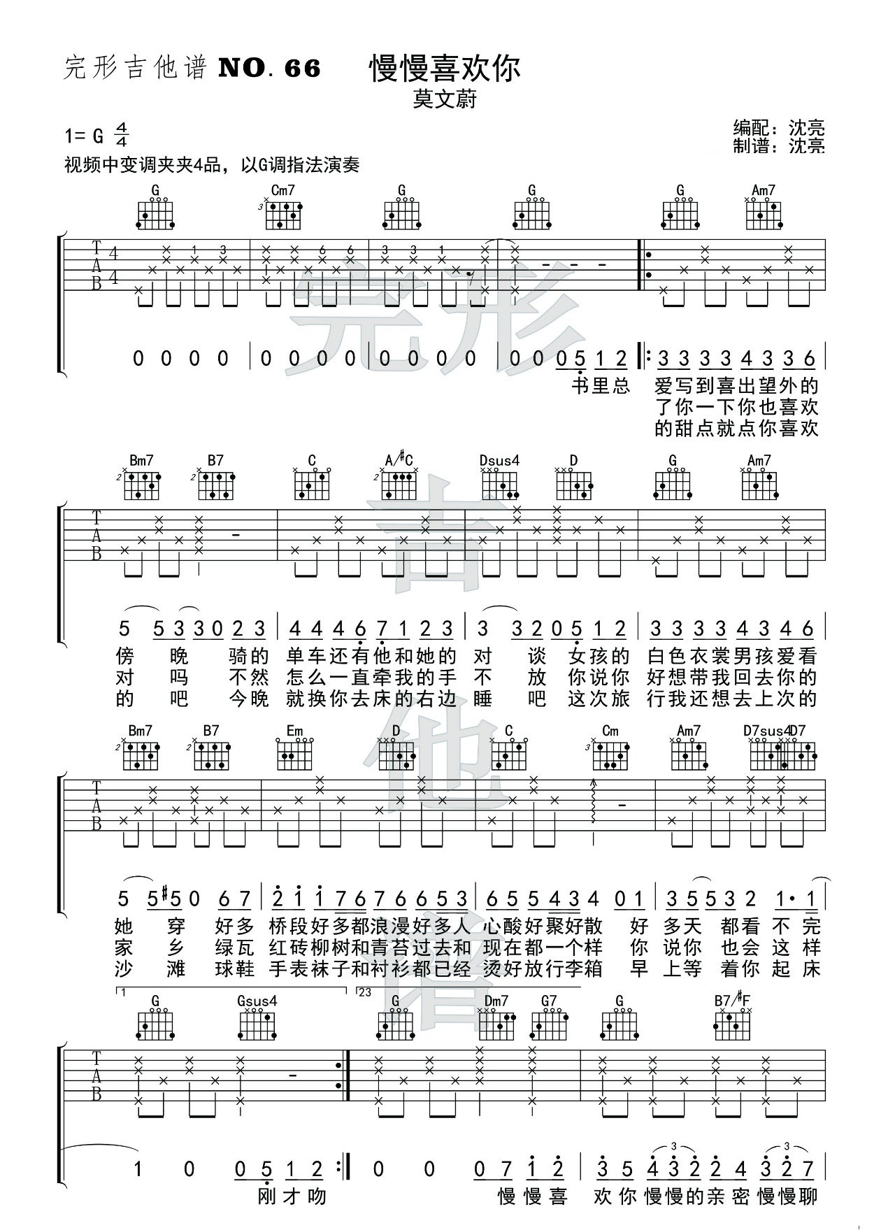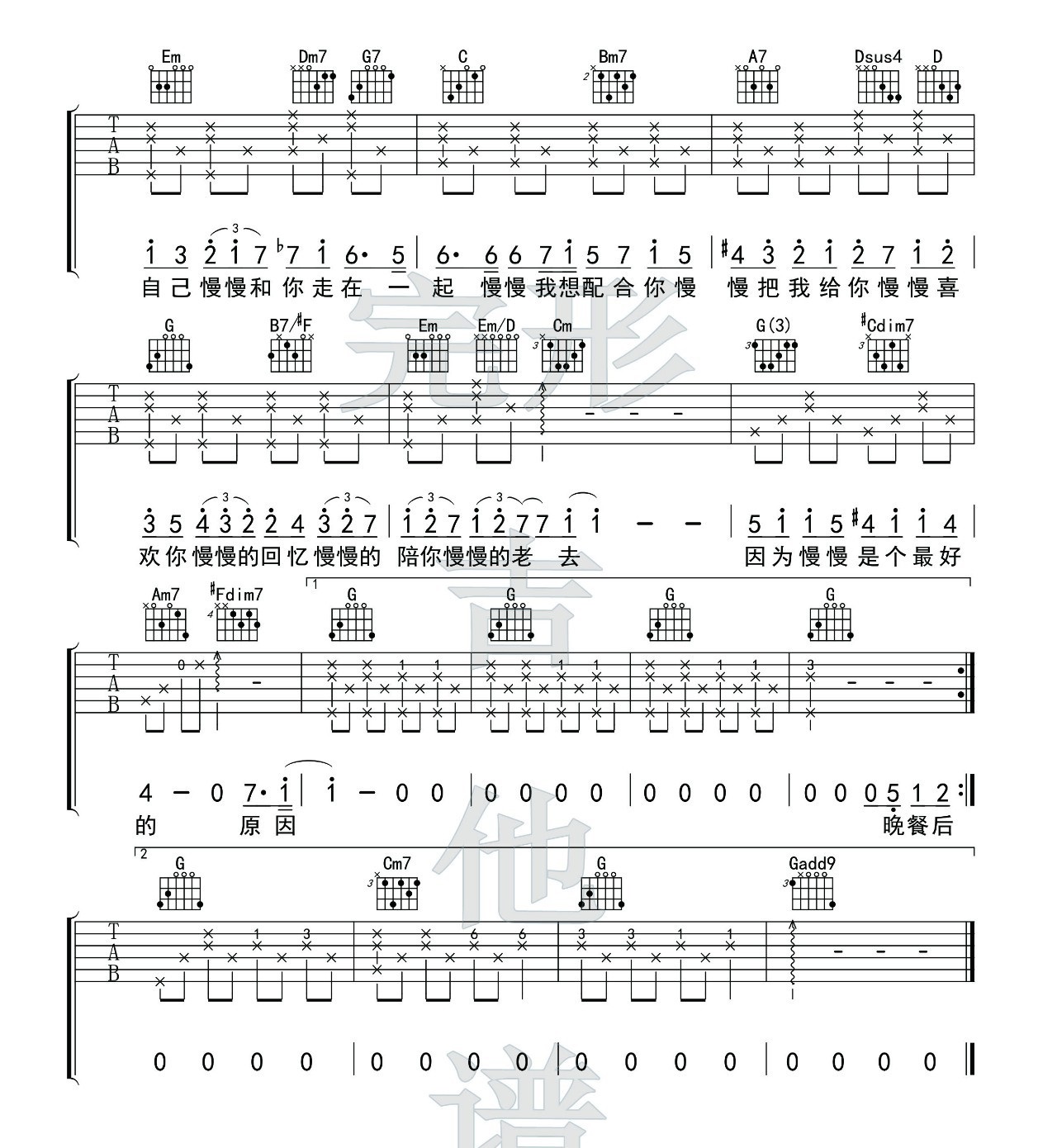 慢慢喜欢你 G调六线吉他谱 - 慢慢喜欢你 - G调吉他弹唱谱