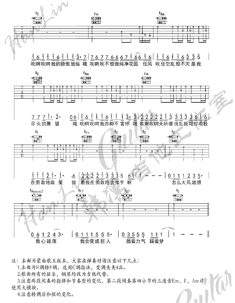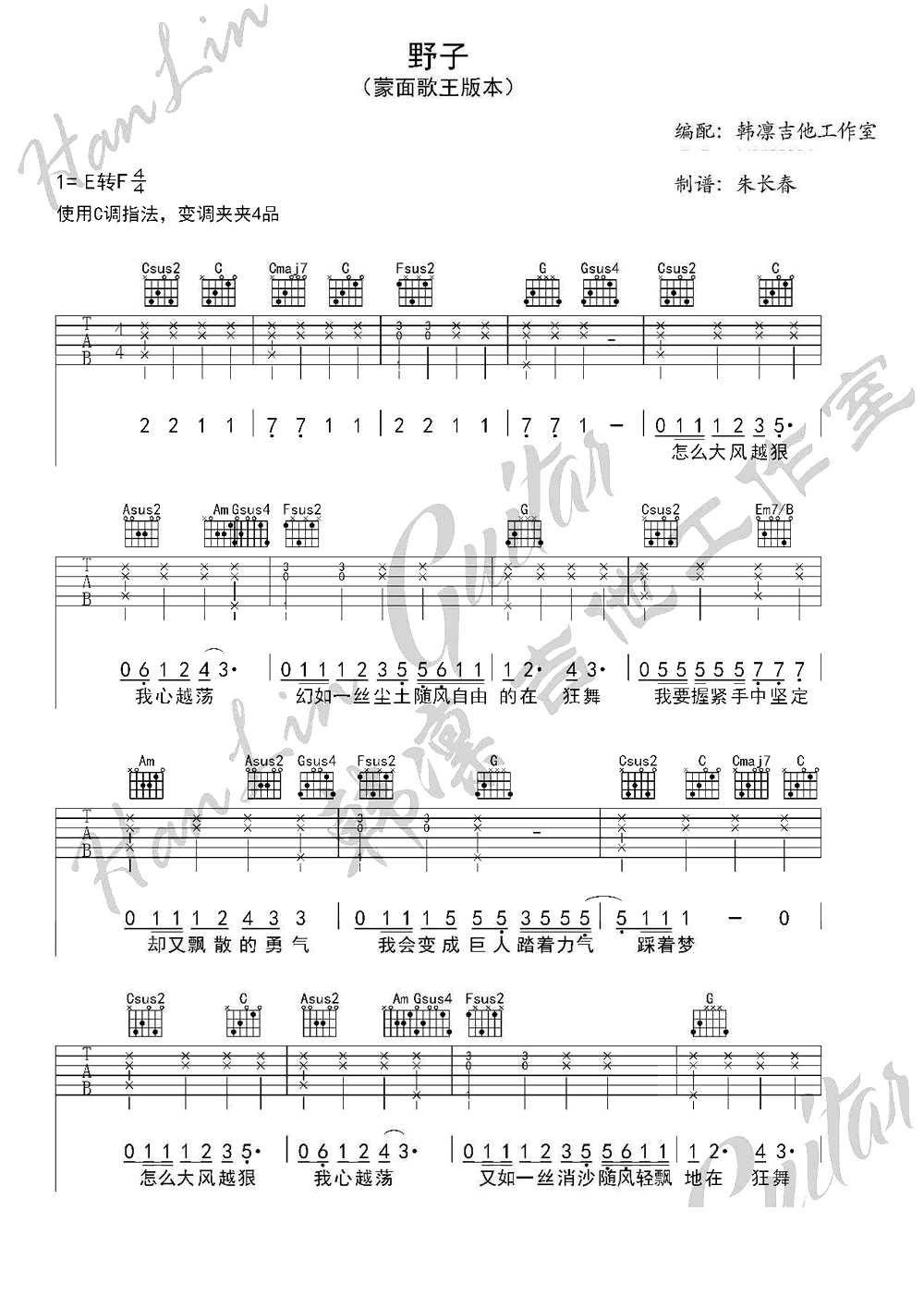 野子 C调男生版 图片吉他谱 - 野子 - C调吉他弹唱谱