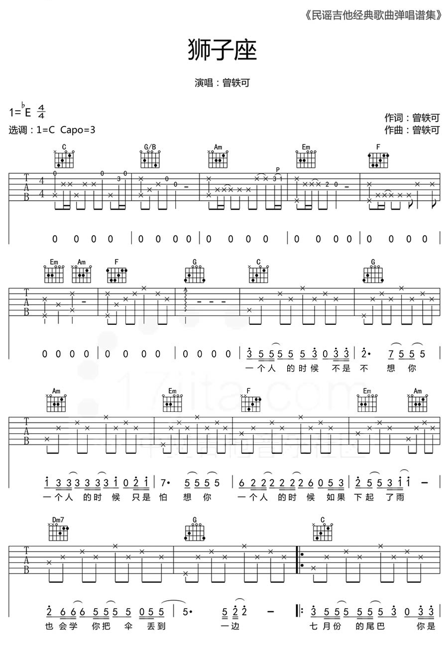 狮子座 C调简单版 曾轶可 吉他六线吉他谱 - 狮子座 - C调吉他弹唱谱