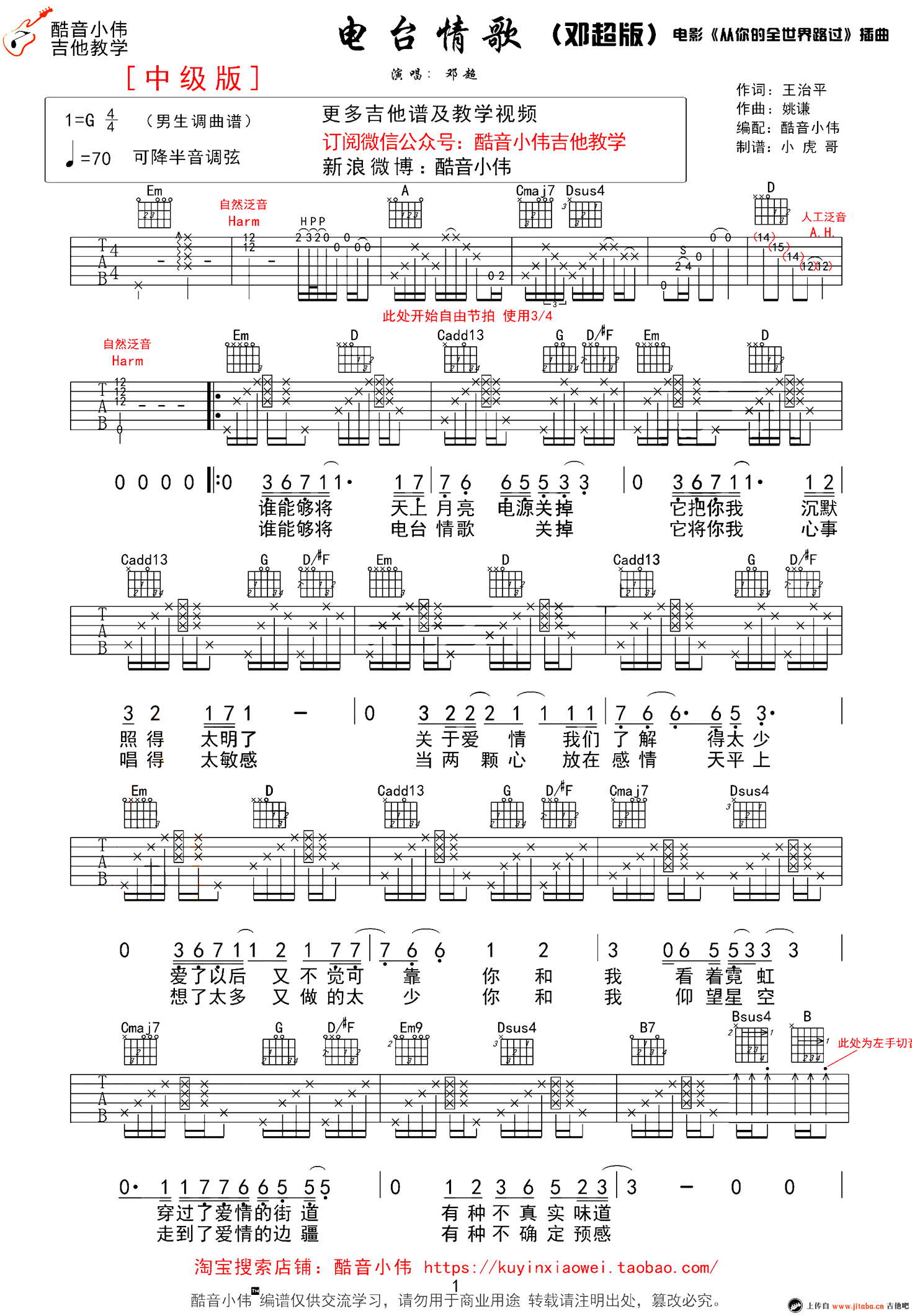 当前位置:琴谱网>吉他弹唱>电台情歌
