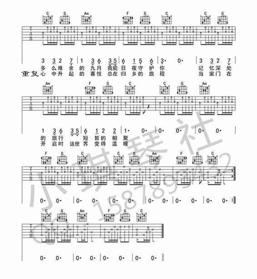 当前位置:琴谱网>吉他弹唱>喜悦 许巍 C调六线