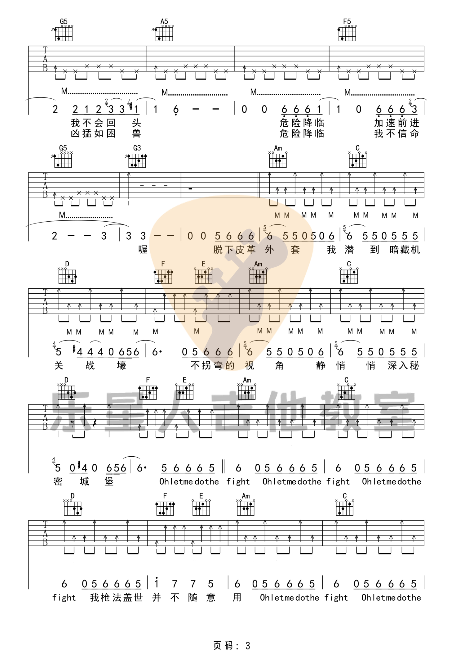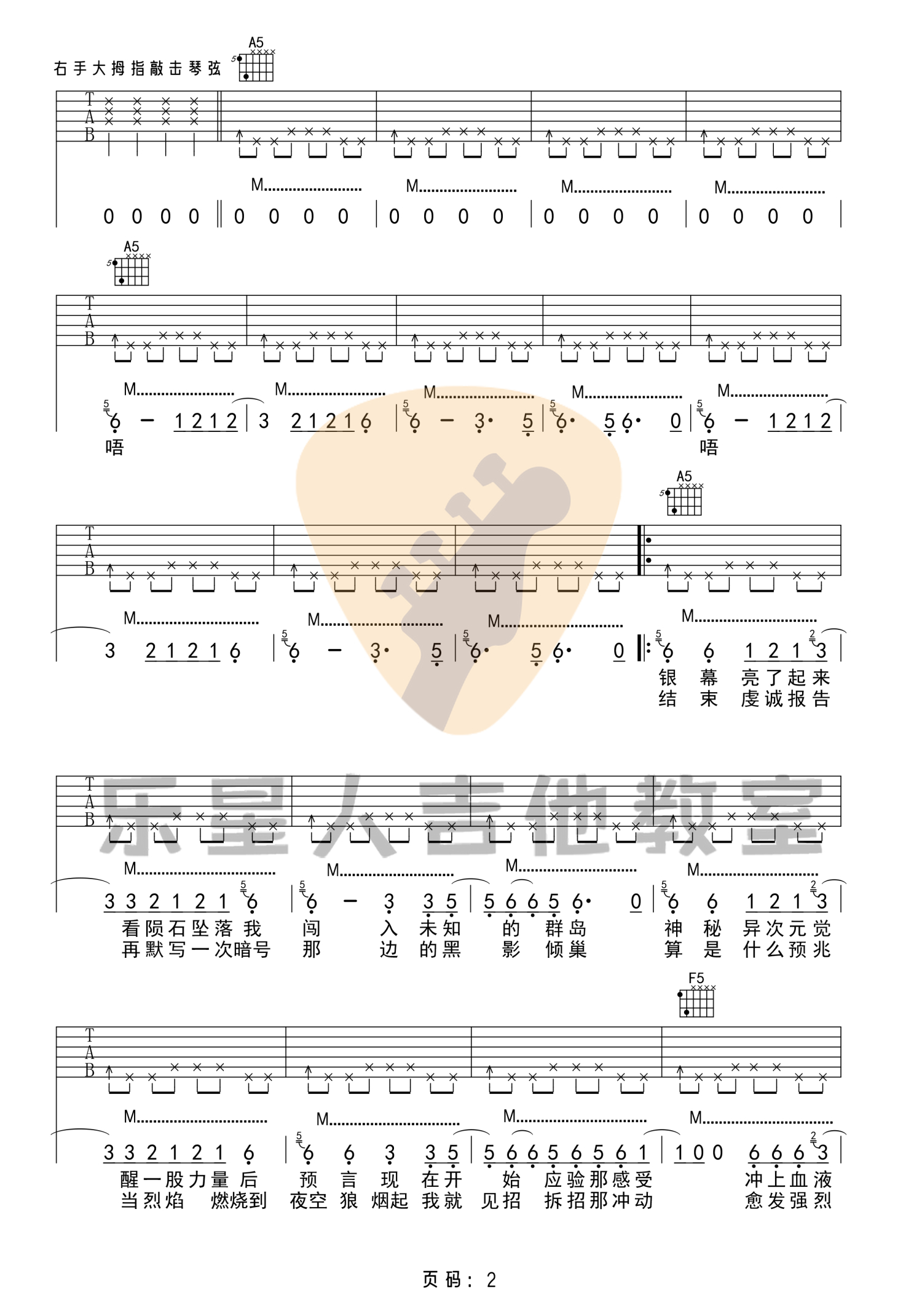 曲谱介绍: 歌曲编配中用到了和原版一样的五和弦加右手闷音的扫弦技巧,还需要再练习G和弦与A和弦的高把位指法。