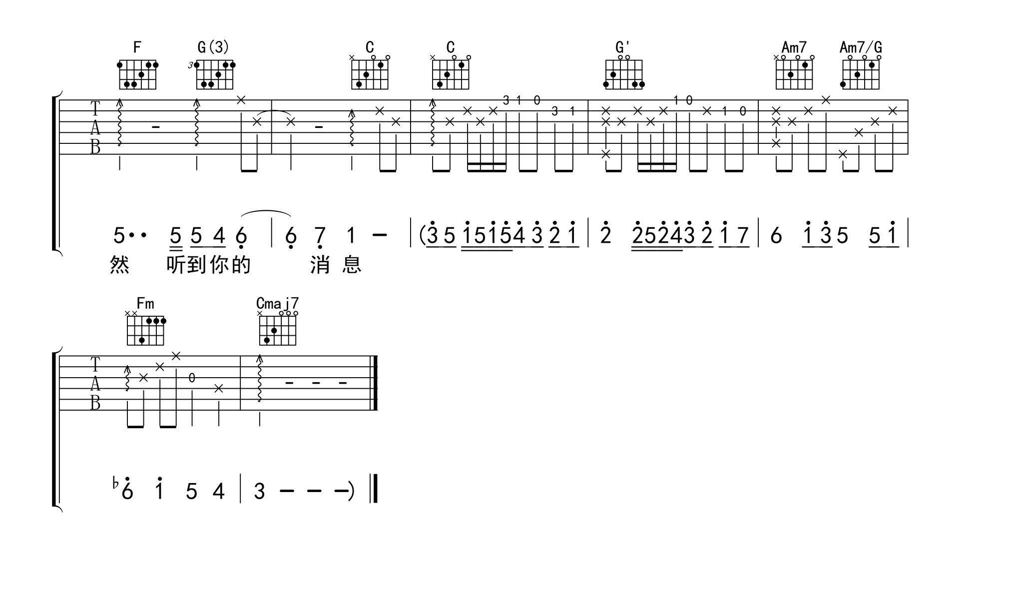 当前位置:琴谱网>吉他弹唱>突然好想你 五月天 C调六线