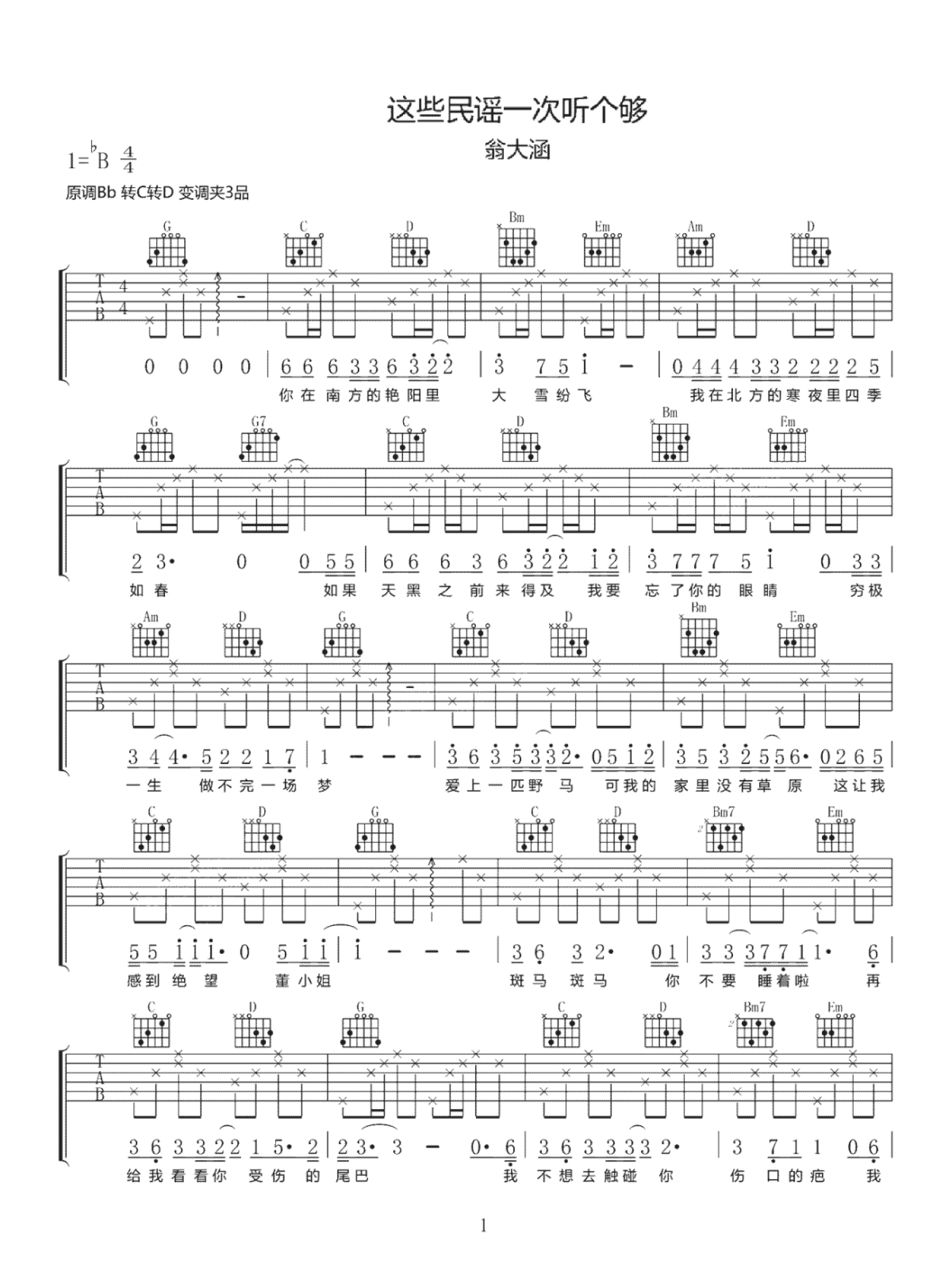 曲谱介绍: 歌曲串烧《这些民谣一次听个够》吉他谱_C调吉他弹唱谱