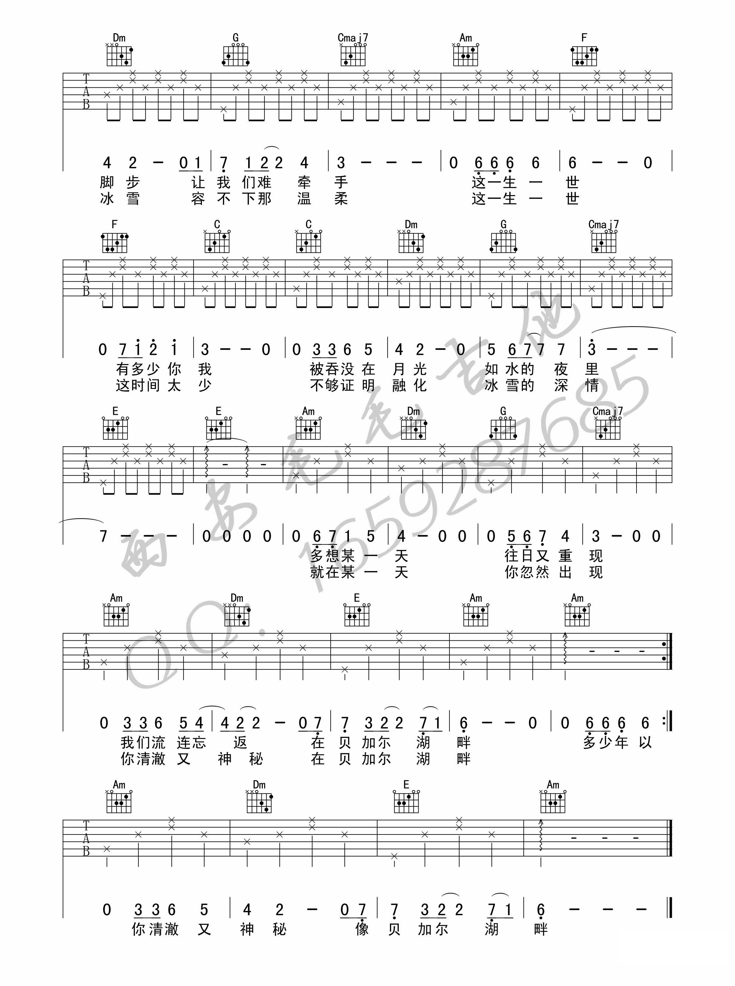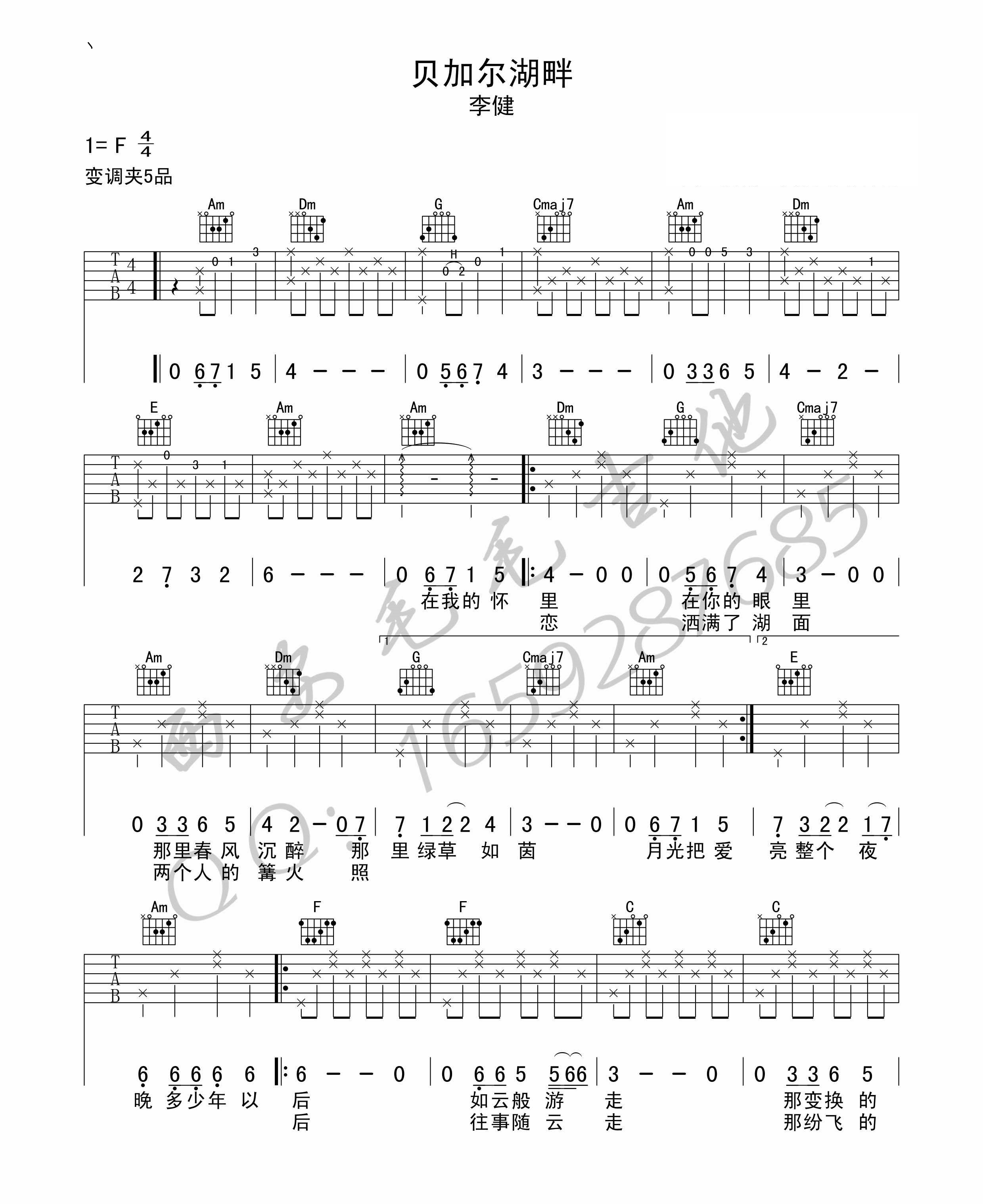 贝加尔湖畔 李健 C调高清深情版吉他谱 - 贝加尔湖畔 - C调吉他弹唱谱