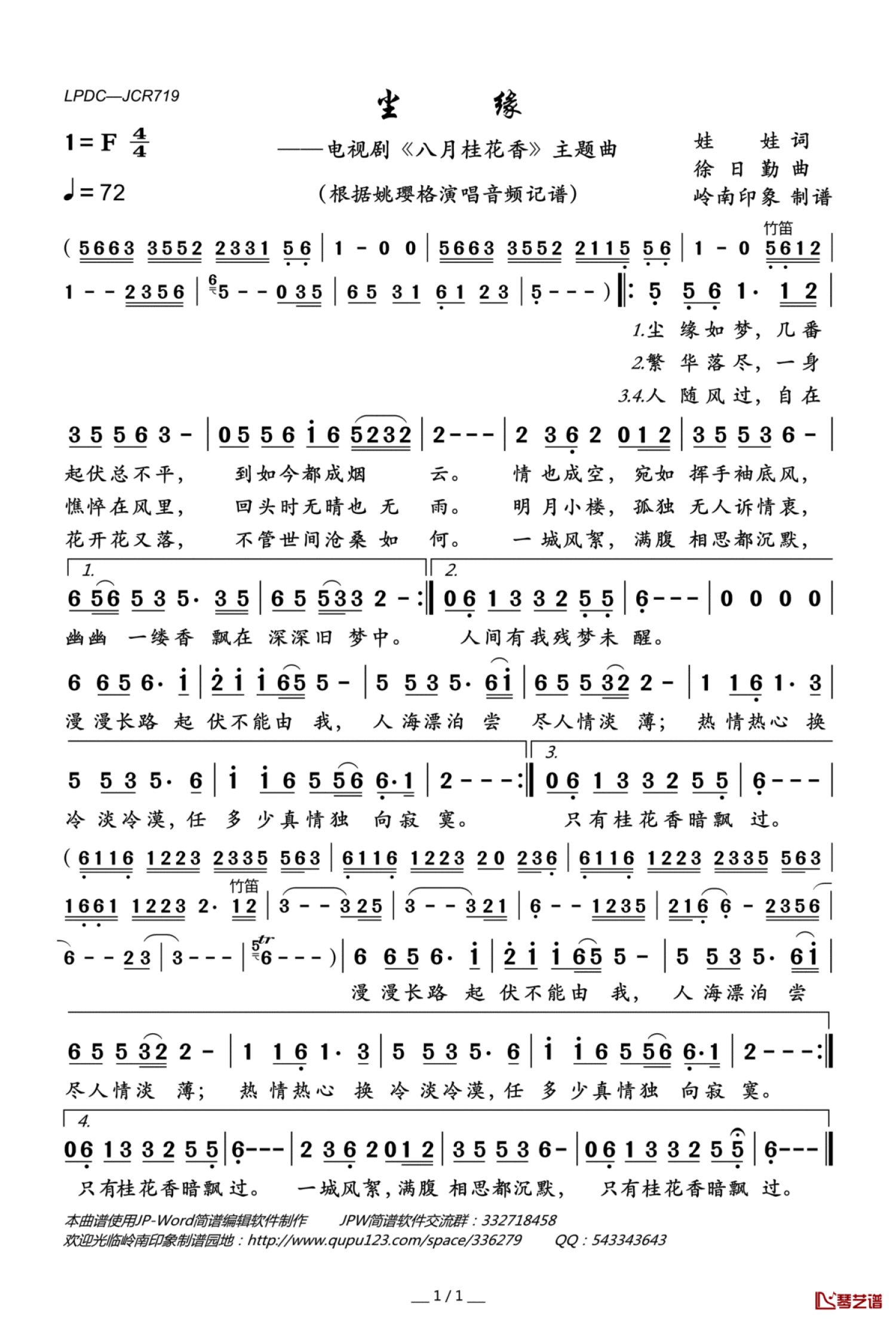 曲谱介绍: 姚璎格《八月桂花香》歌词_简谱