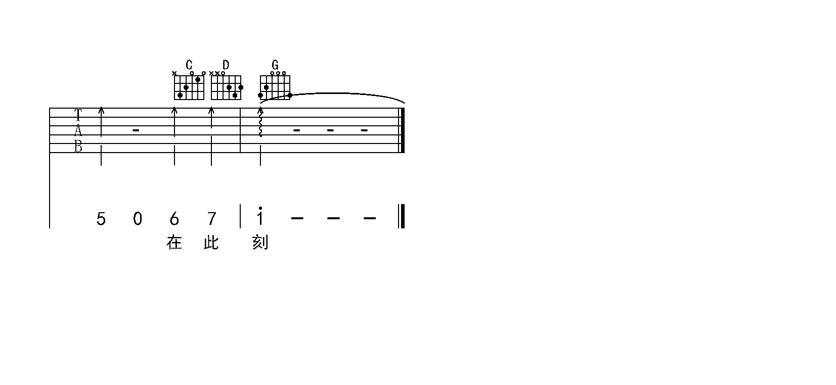 当前位置:琴谱网>吉他弹唱>在此刻 韩磊 G调六线