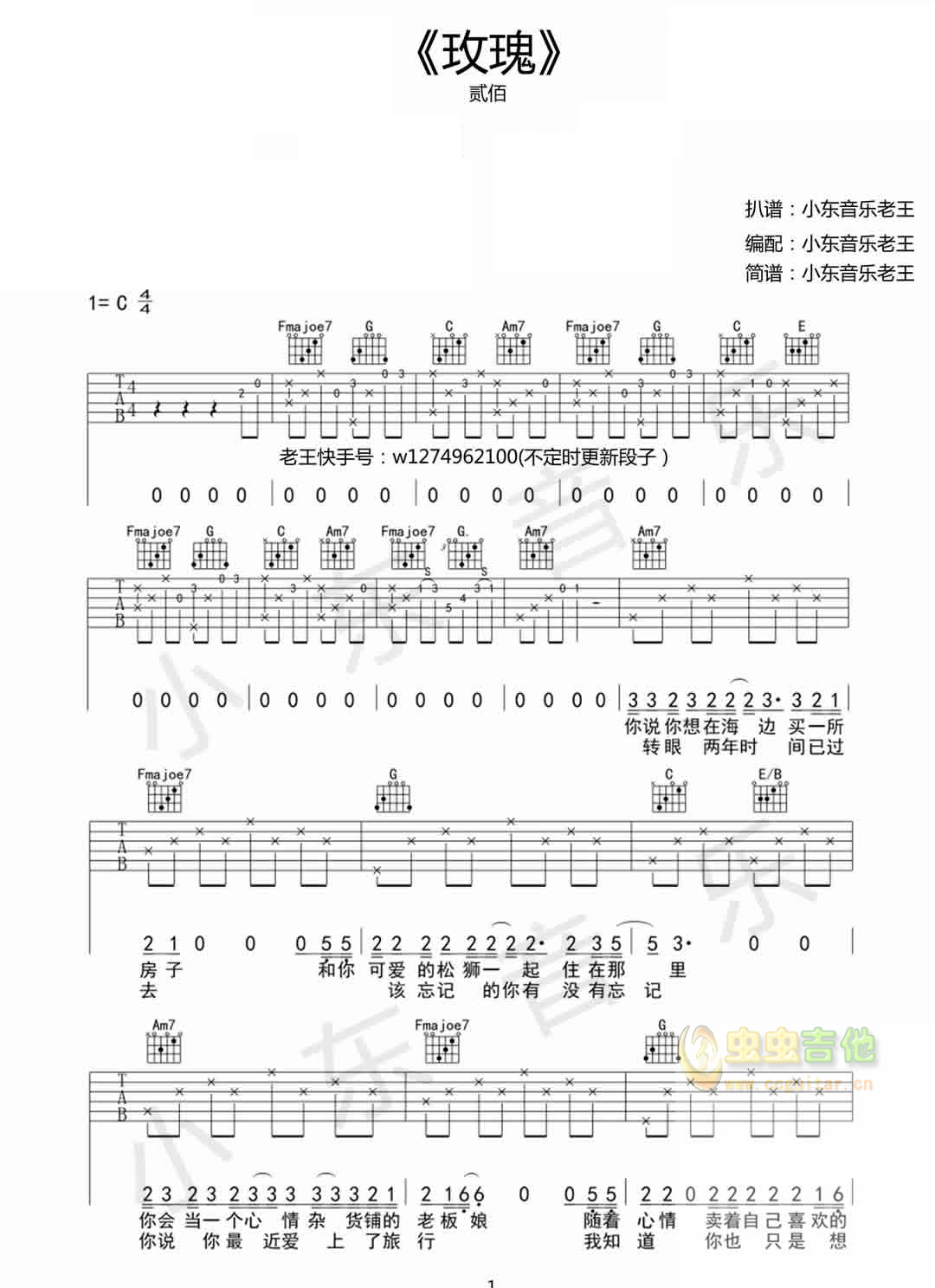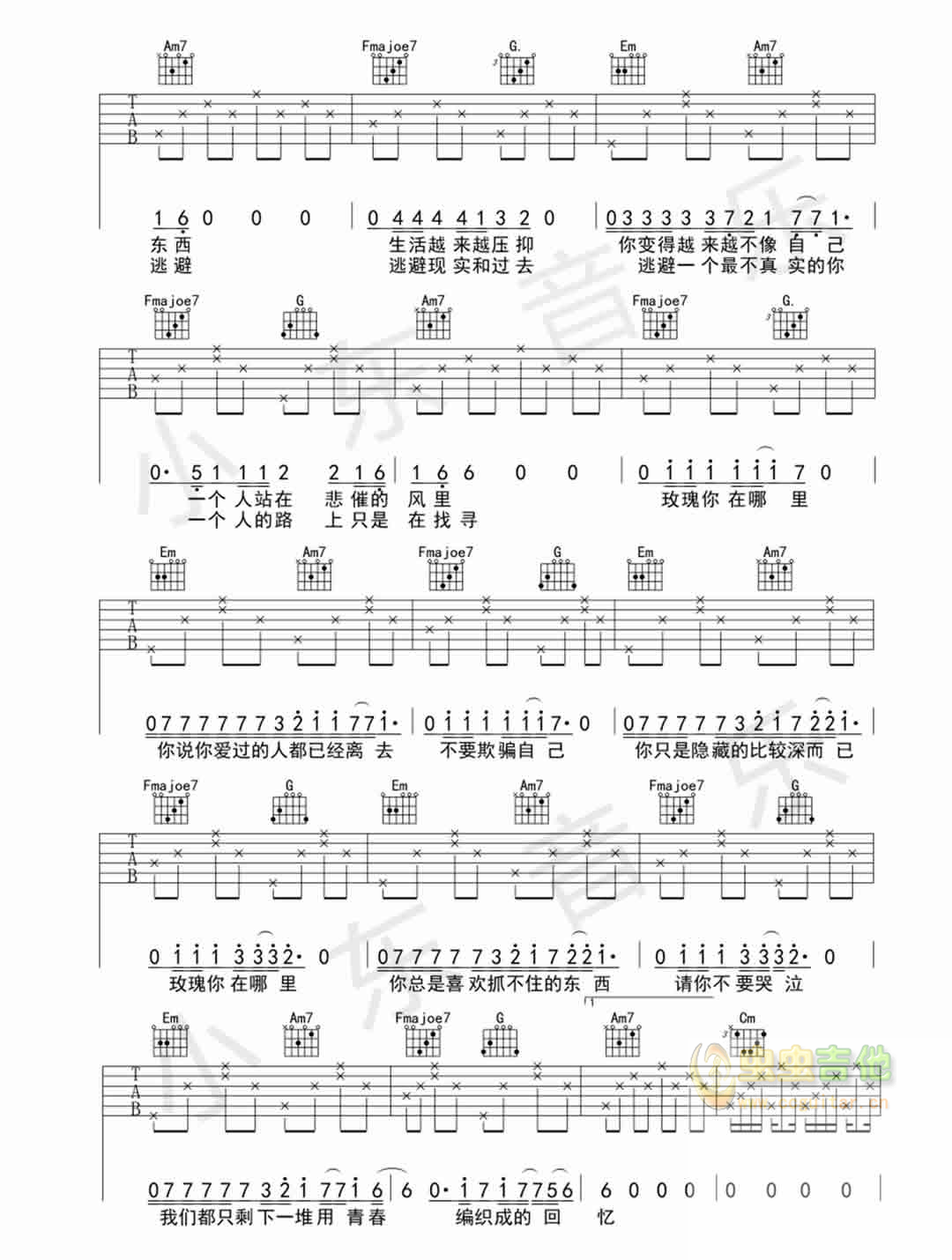 玫瑰 贰佰 C调图片吉他谱 - 玫瑰 - C调吉他弹唱谱