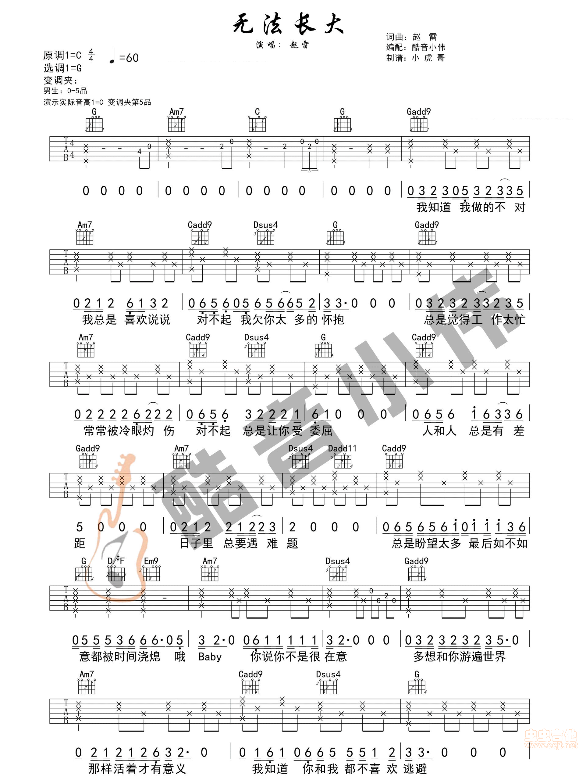 无法长大 赵雷 C调图片吉他谱 - 无法长大 - C调吉他弹唱谱