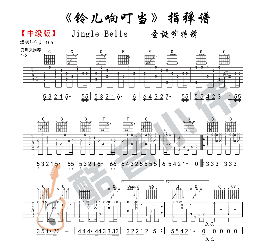 铃儿响叮当 酷音小伟 C调图片吉他谱 - 铃儿响叮当 - C调吉他弹唱谱